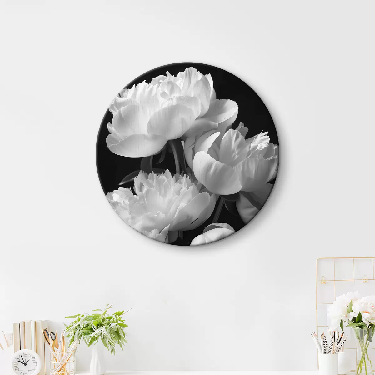 Tableaux rondes Pivoines blanches sur fond noir Nr r40208