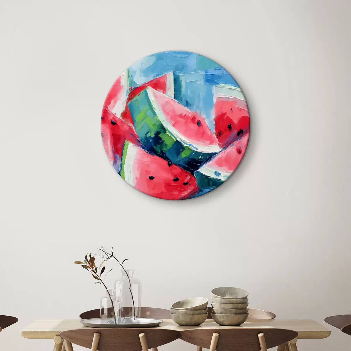 Tableaux rondes Morceaux de pastèque sur fond bleu Nr r40211