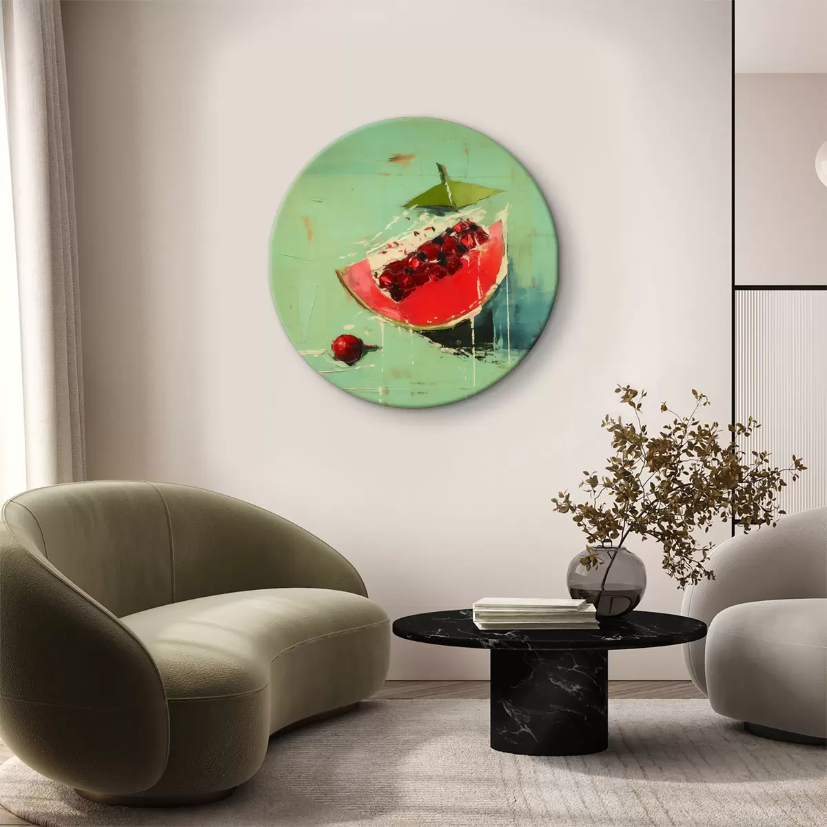 Tableaux rondes Peinture abstraite d'une tranche de grenade Nr r40212