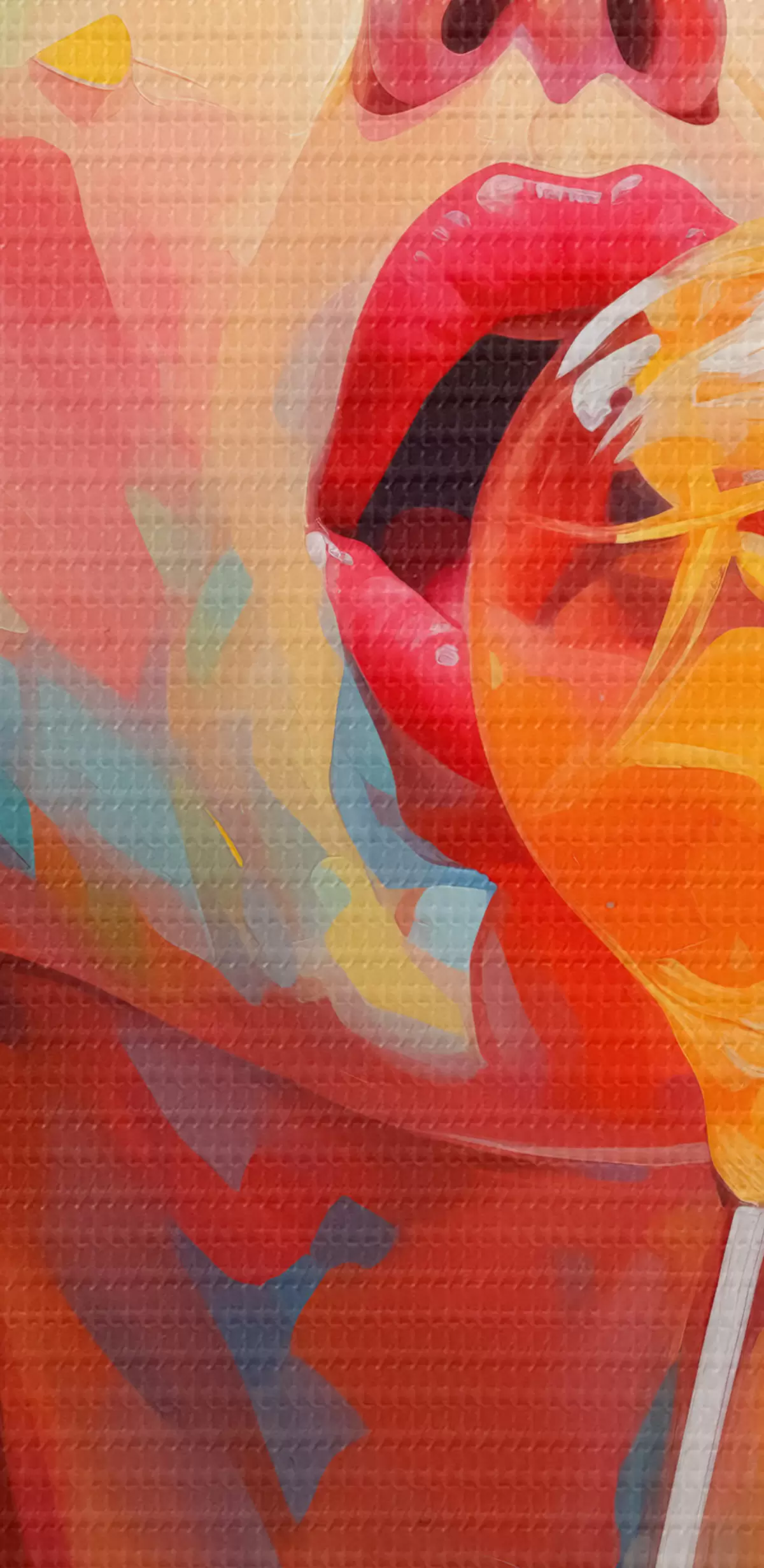 Tableaux rondes Une fille aux cheveux bouclés aux couleurs vives lèche une sucette r40213