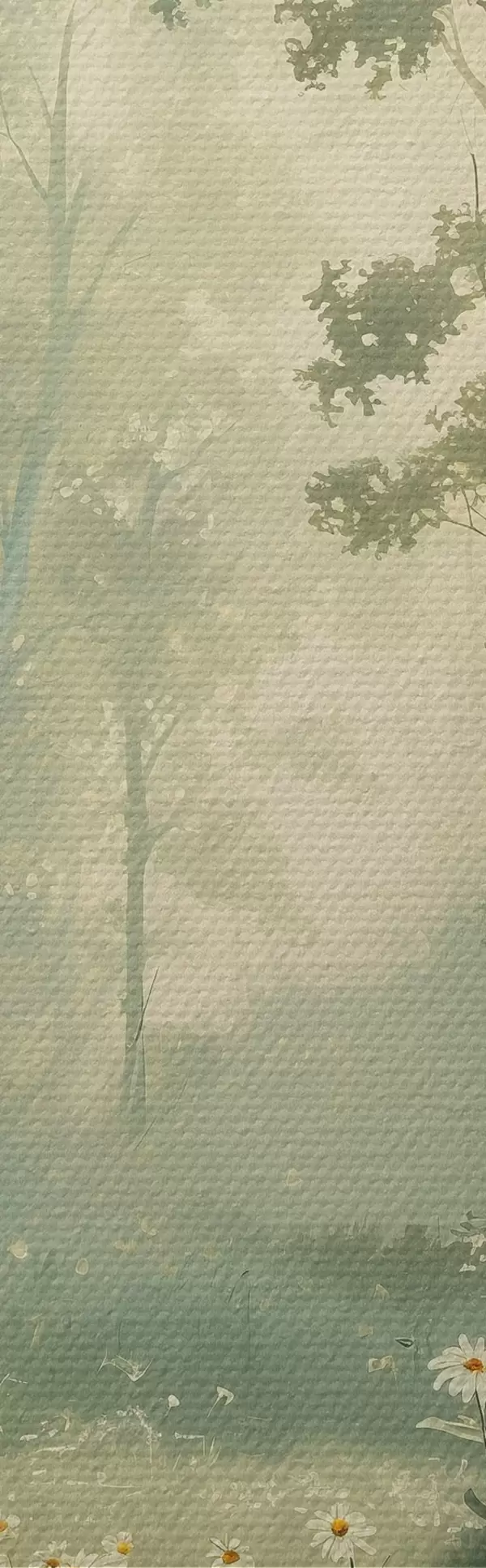 Tableaux rondes Forêt avec une douce lumière du soleil, fleurs de camomille, arbres, herbe verte, dessin acrylique r40228