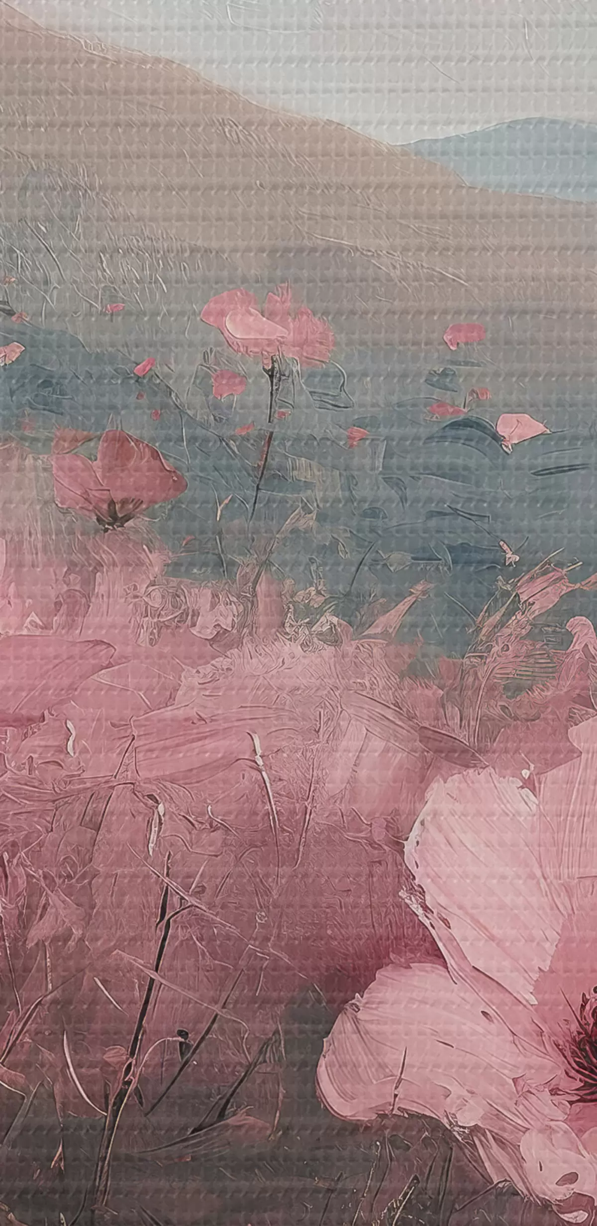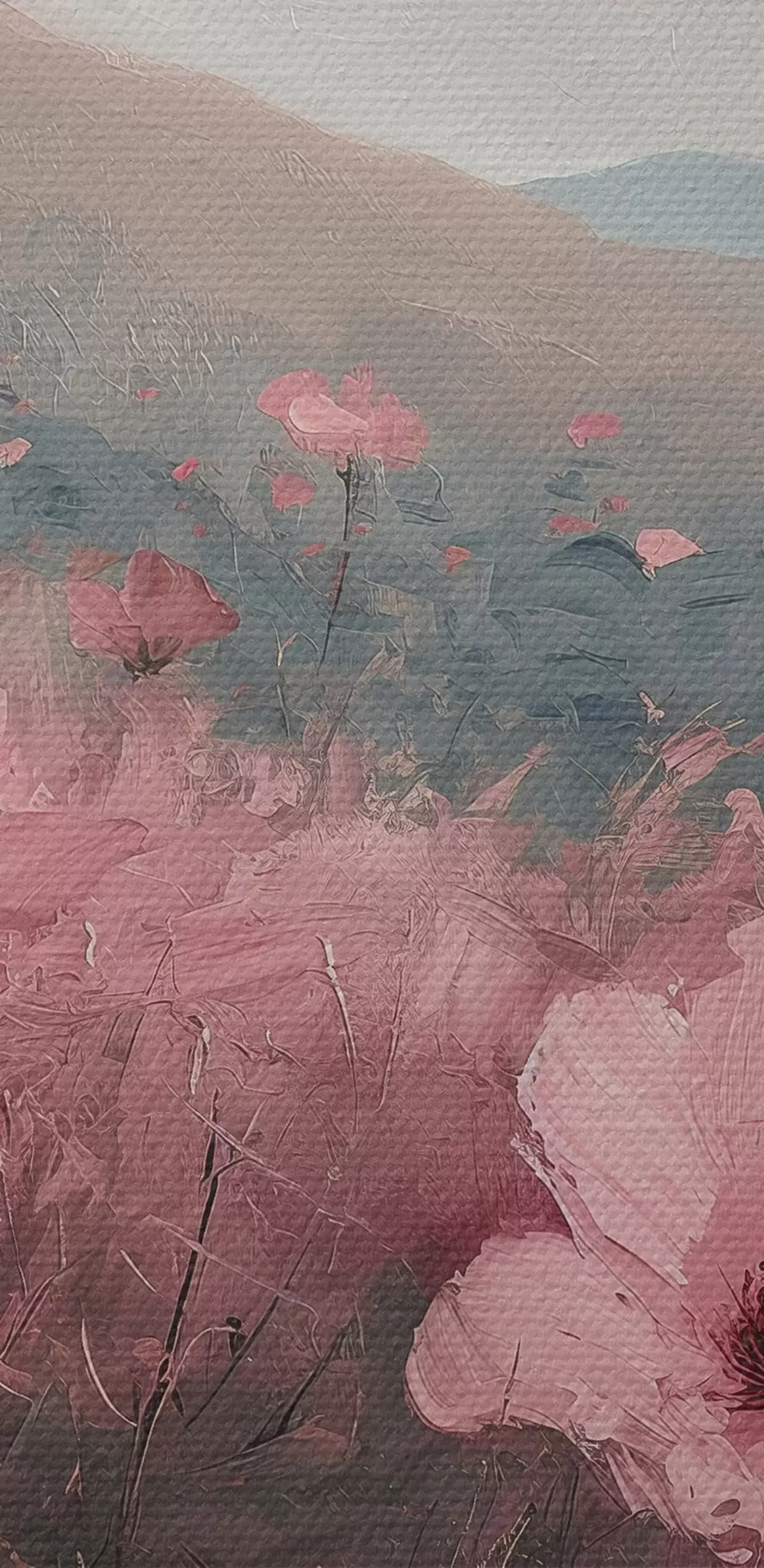 Tableaux rondes Fleurs roses dans le pré, paysage naturel, montagnes, peinture à l'huile, coups de pinceau vifs r40233