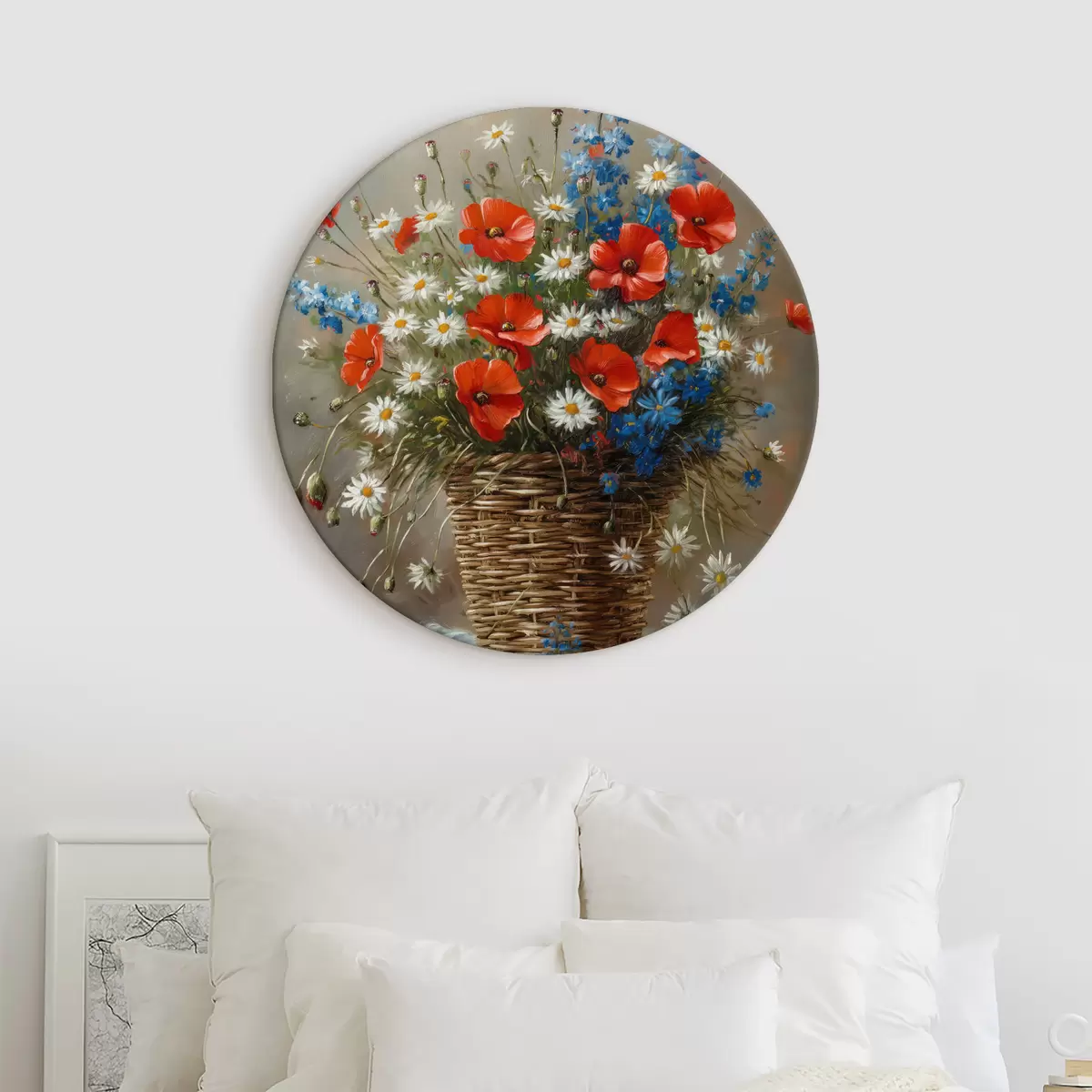 Tableaux rondes un bouquet de fleurs sauvages dans un panier r40262