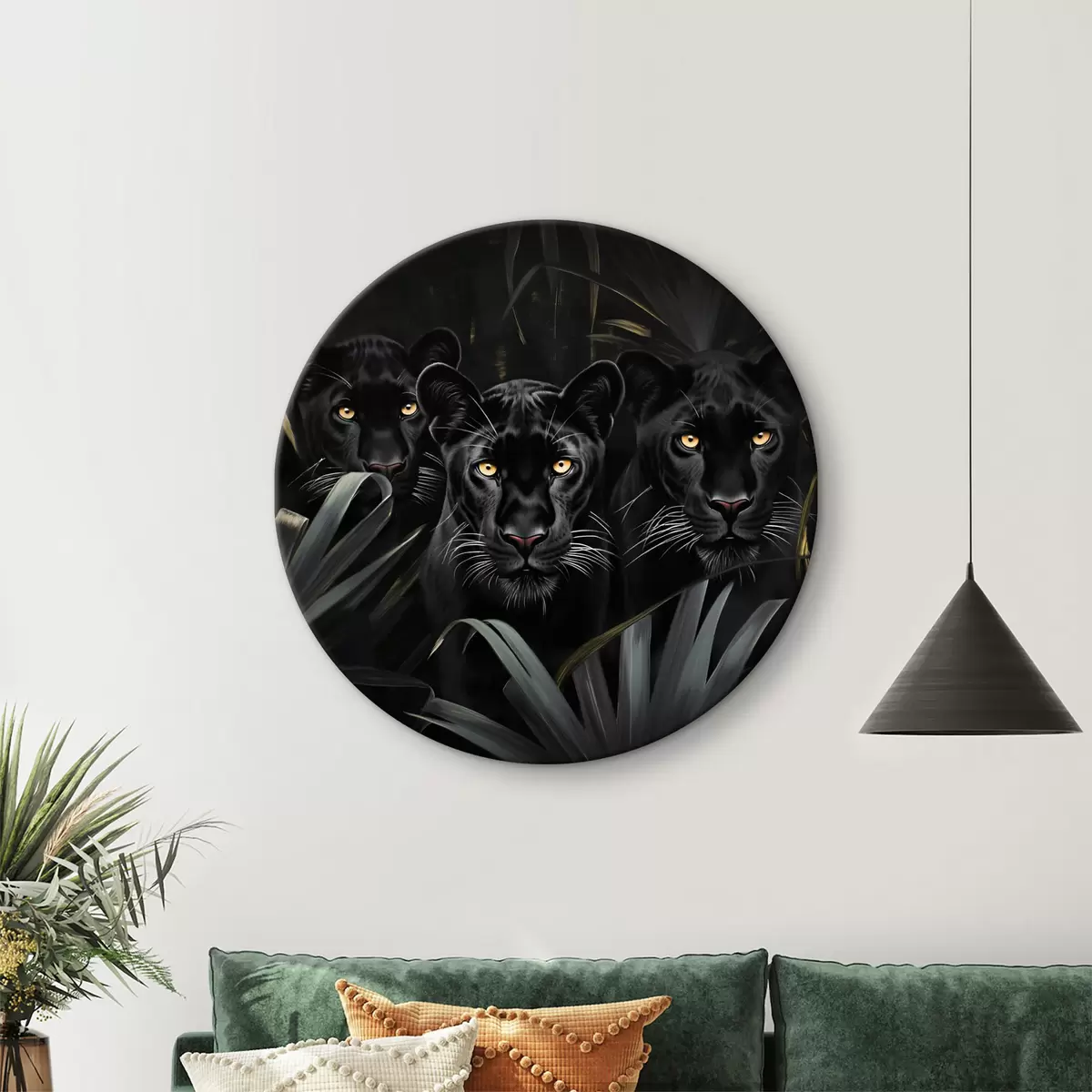 Tableaux rondes Lions noirs dans les buissons Nr r40274
