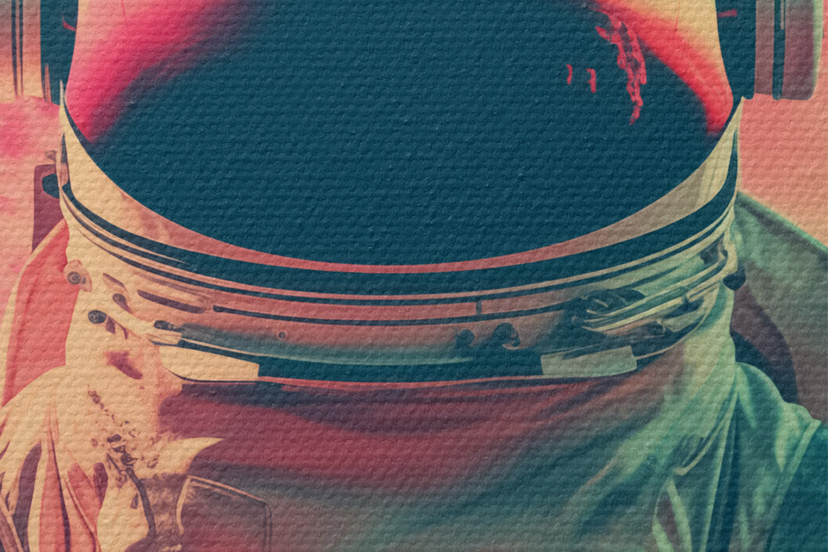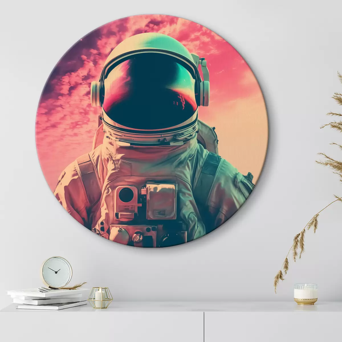 Tableaux rondes Astronaute en combinaison spatiale sur fond de ciel rose Nr r40312