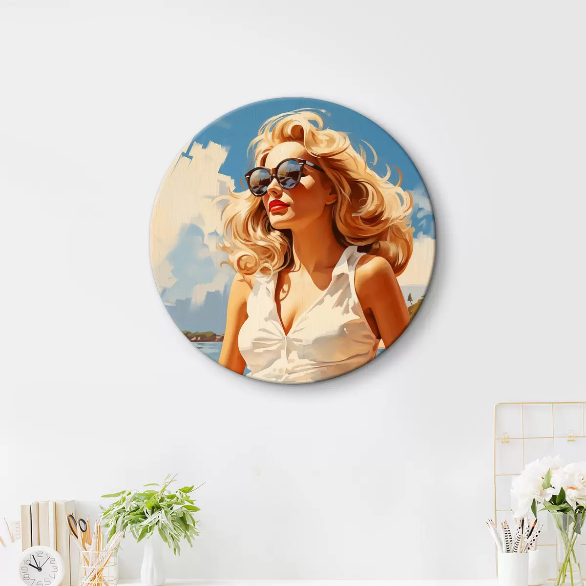 Tableaux rondes Illustration d'une fille blonde sur fond de mer Nr r40321