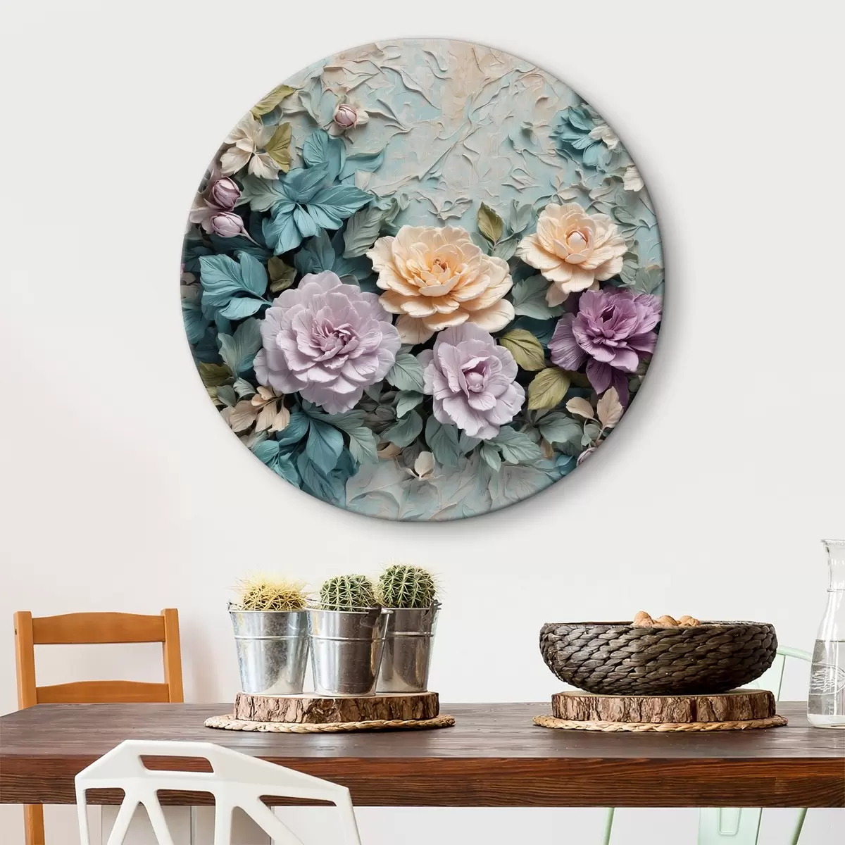 Tableaux rondes Fleurs et feuilles sur fond abstrait Nr r40332