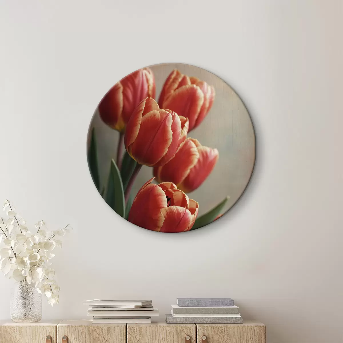 Tableaux rondes Tulipes sur fond flou Nr r40340