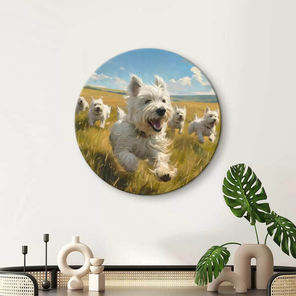 Tableaux rondes Petits chiots dans le champ Nr r40358
