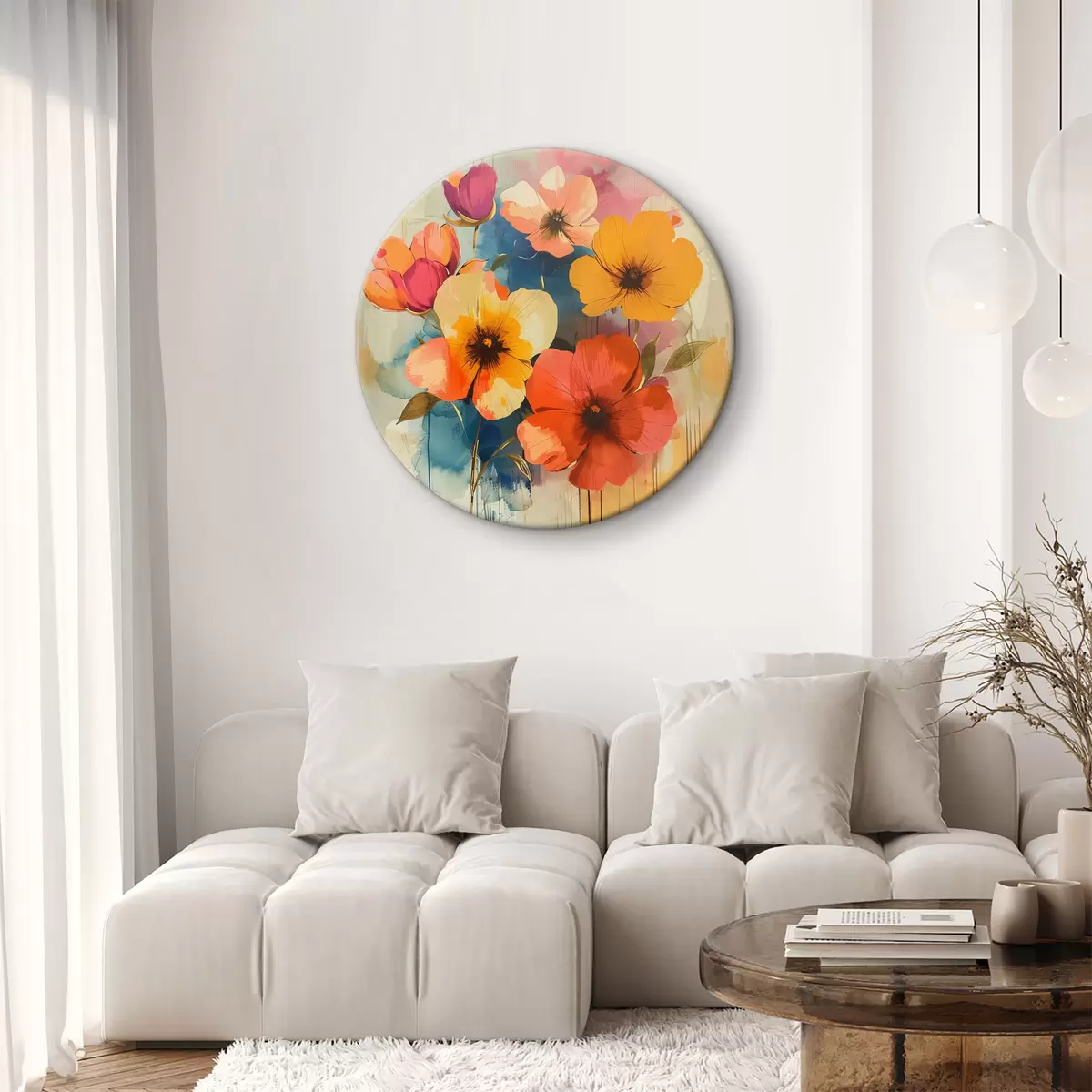 Tableaux rondes Fleurs à l'aquarelle sur un fond abstrait Nr r40371