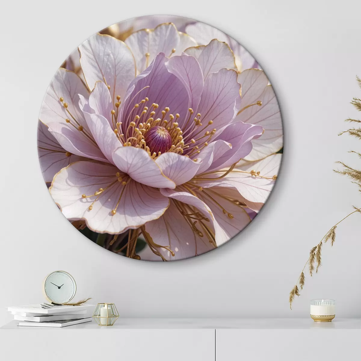 Tableaux rondes Gros plan d'une grande fleur de pivoine rose pâle avec des pétales délicats et un centre jaune vif Nr r40384