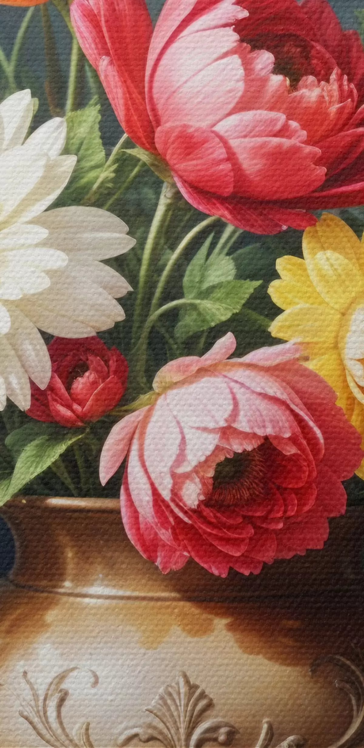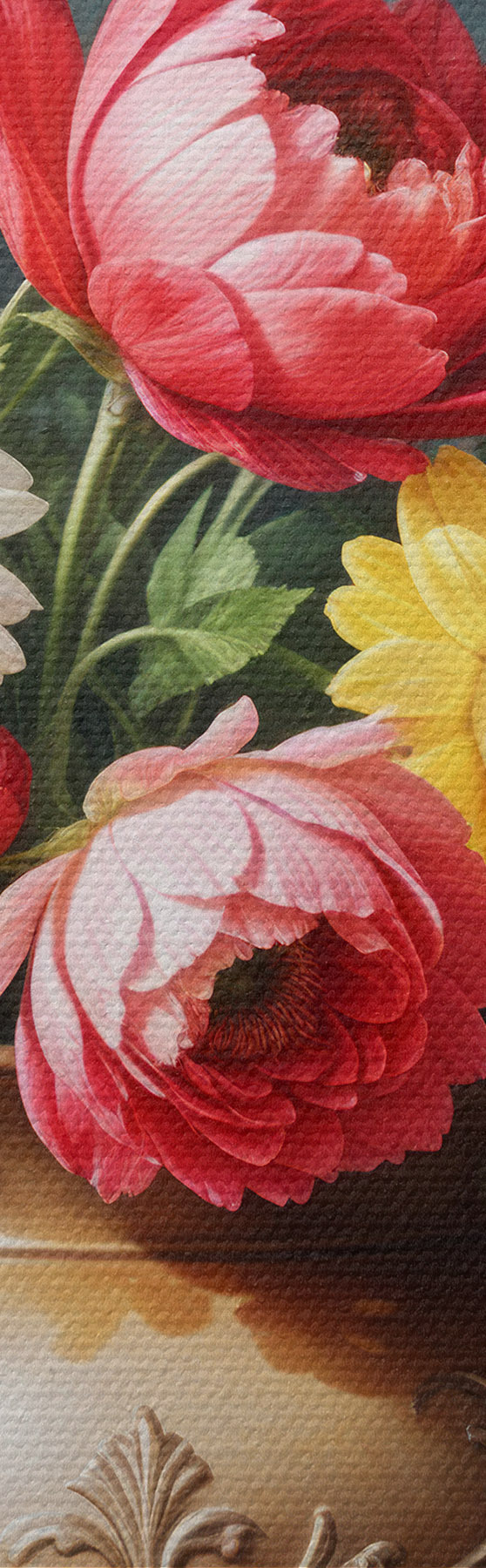 Trois types de matériaux peuvent être commandés : Economic Canvas - matériau dense et durable pour l'impression numérique, identique à la toile de peintre, surface imperméable, reproduction réaliste des détails, matériau à grain moyen. Premium Canvas - la texture ressemble à celle d'une toile de peintre (petits fils entrelacés). Reproduction douce et détaillée de l'image sur une surface mate. Eco-Premium - tissu 100 % coton de haute qualité. Grâce aux fibres naturelles de coton, le matériau est durable et résistant à l'usure. Excellente reproduction des couleurs et des détails.