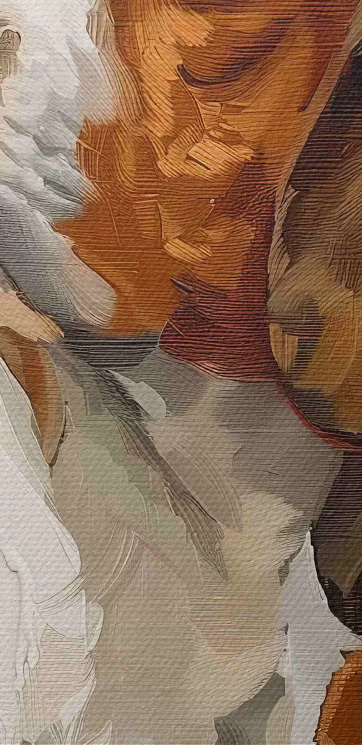Trois types de matériaux peuvent être commandés : Economic Canvas - matériau dense et durable pour l'impression numérique, identique à la toile de peintre, surface imperméable, reproduction réaliste des détails, matériau à grain moyen. Premium Canvas - la texture ressemble à celle d'une toile de peintre (petits fils entrelacés). Reproduction douce et détaillée de l'image sur une surface mate. Eco-Premium - tissu 100 % coton de haute qualité. Grâce aux fibres naturelles de coton, le matériau est durable et résistant à l'usure. Excellente reproduction des couleurs et des détails.