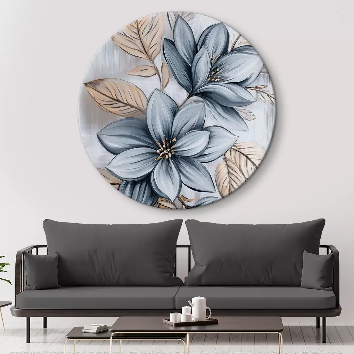 Tableaux rondes Fleurs bleues sur fond gris Nr r40453