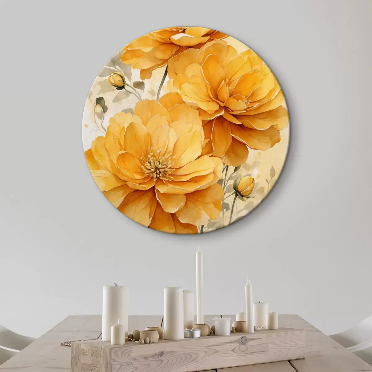 Tableaux rondes Fleurs jaunes sur fond flou Nr r40482