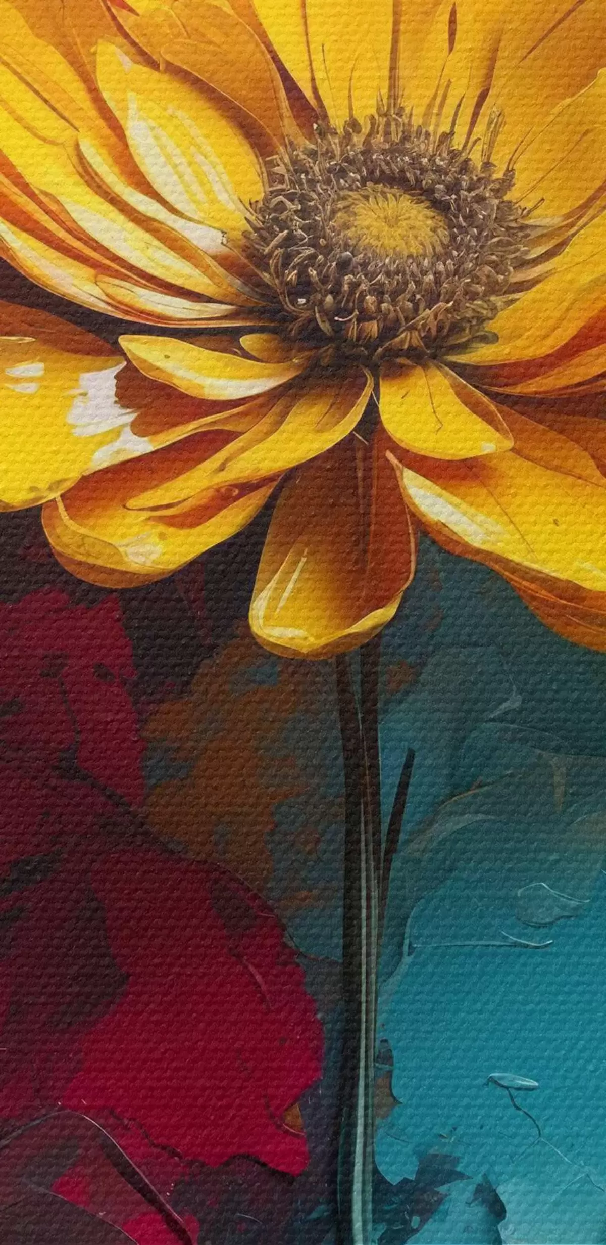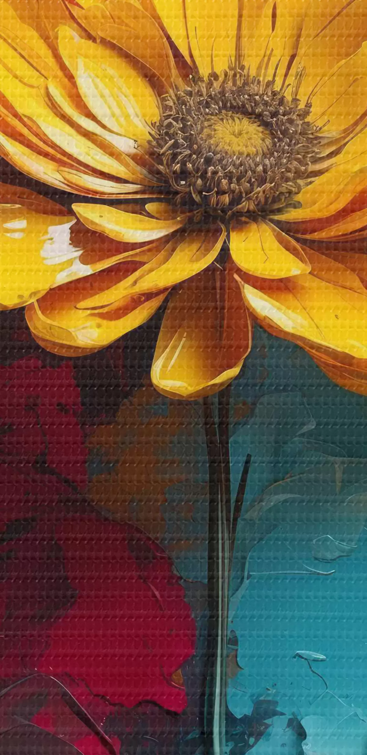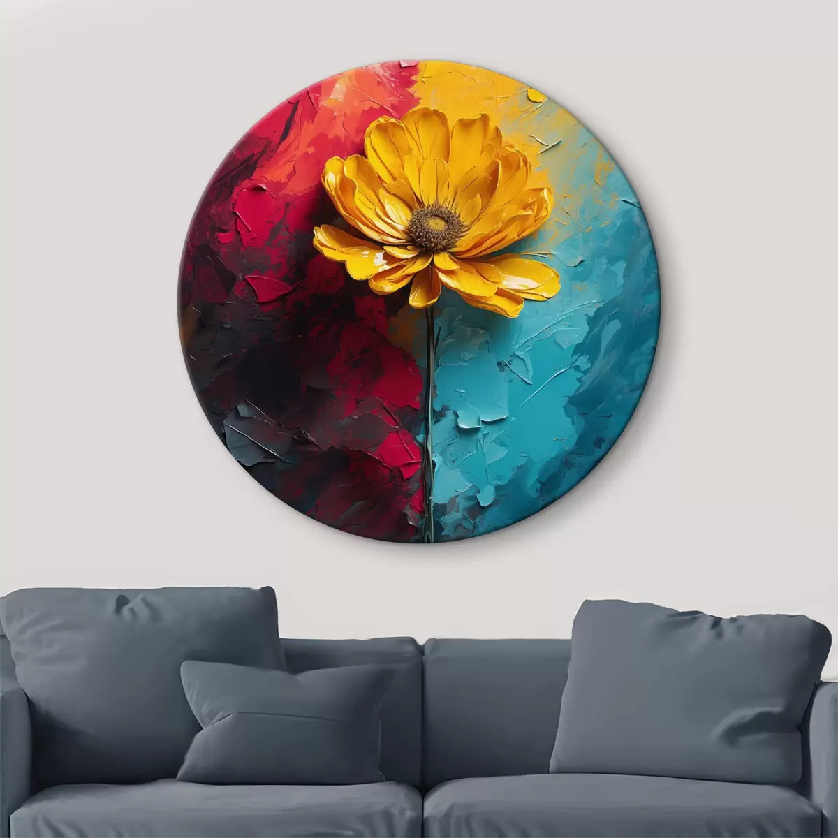 Tableaux rondes Fleur jaune sur fond acrylique abstrait r40483