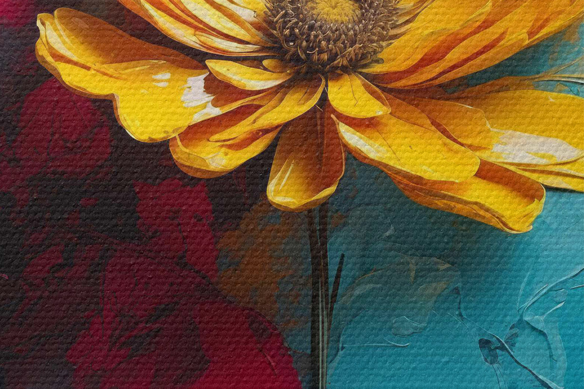 Tableaux rondes Fleur jaune sur fond acrylique abstrait Nr r40483