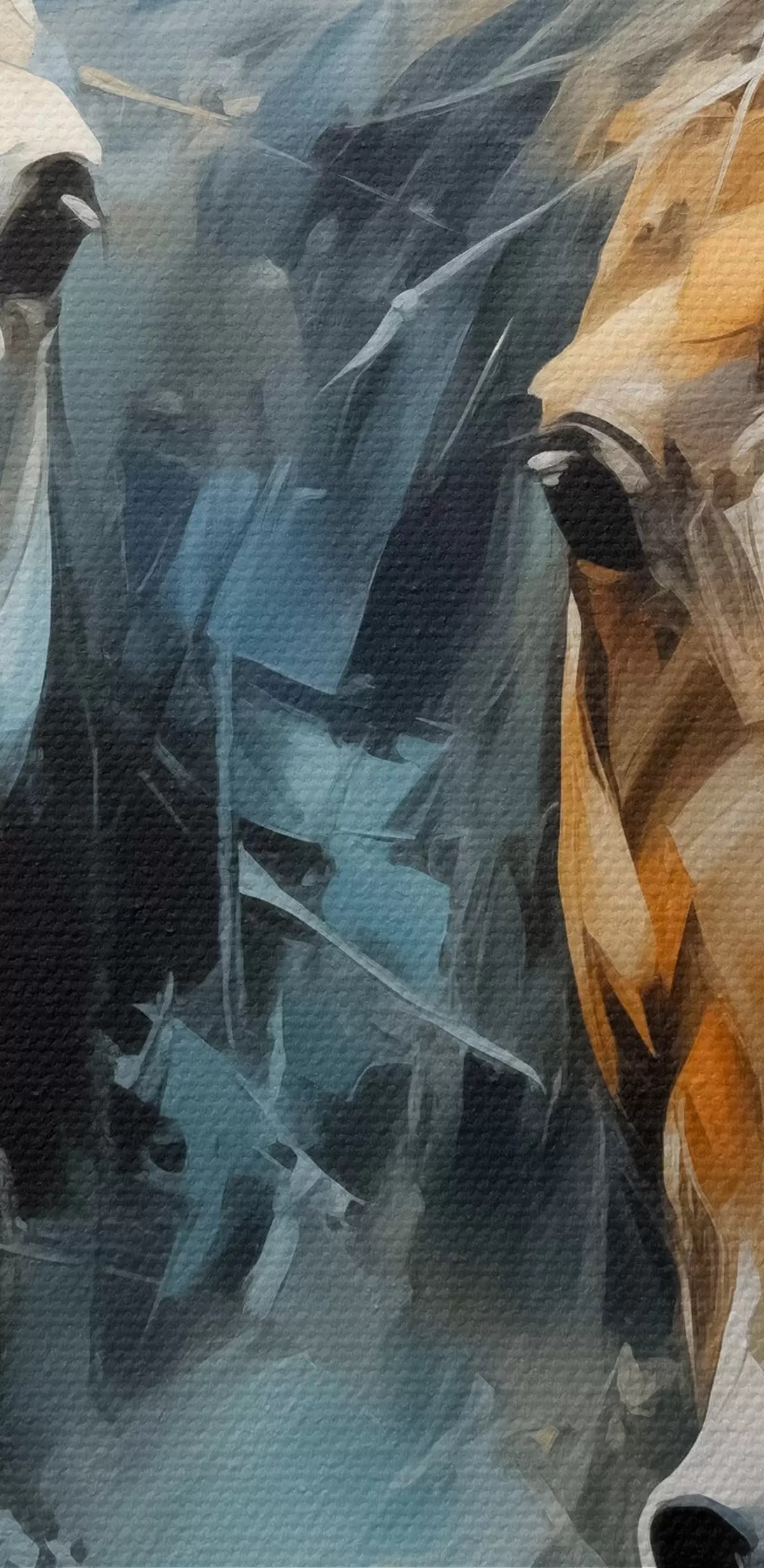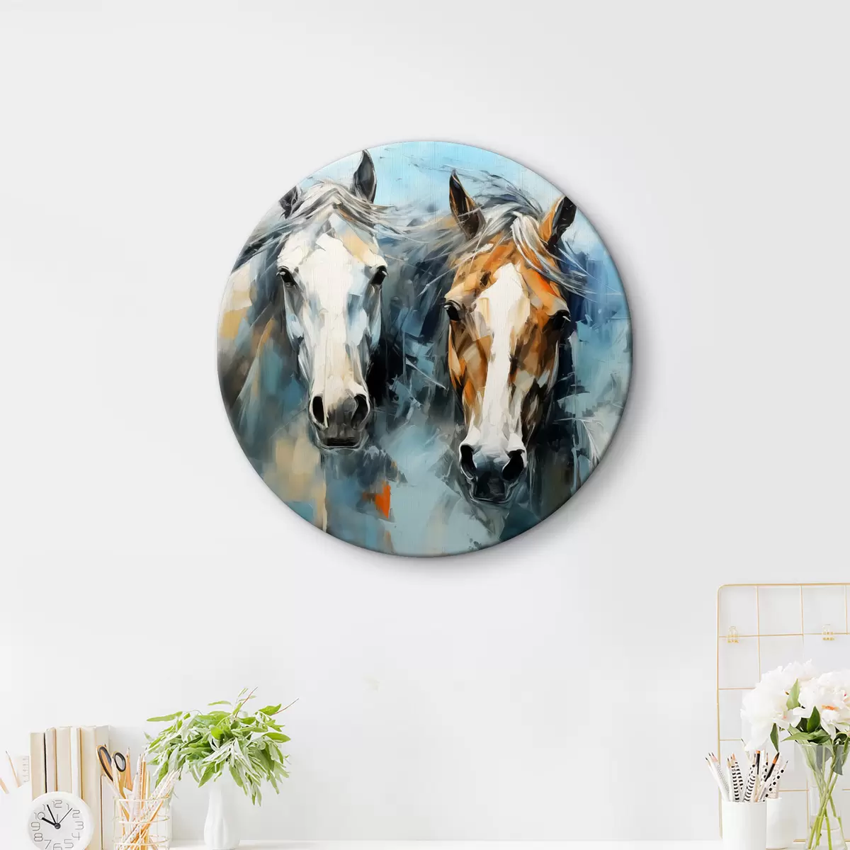 Tableaux rondes Peinture abstraite de chevaux, couleur blanche, bleue et marron r40493