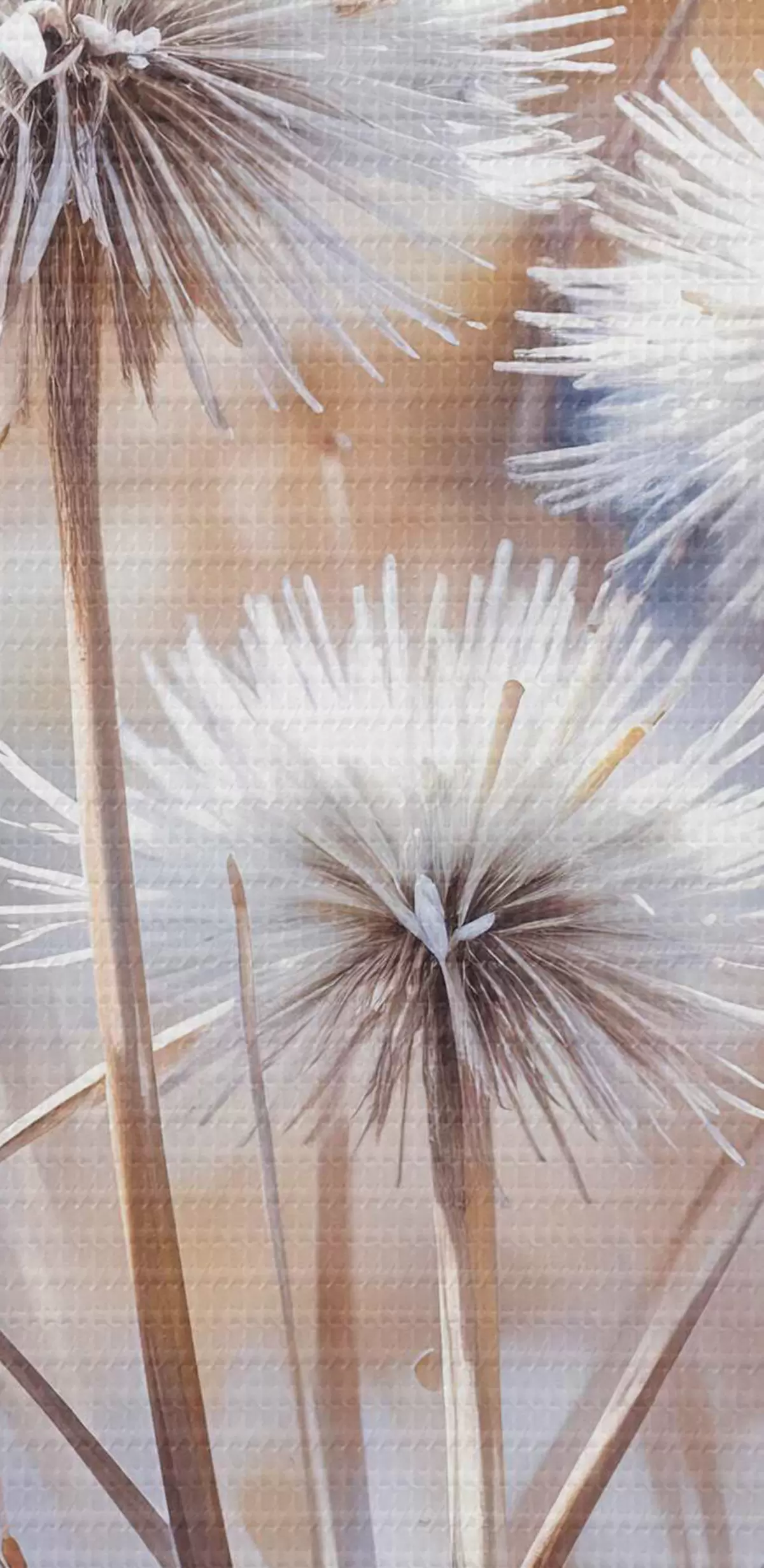 Tableaux rondes Fleurs de pissenlit blanches et touffues sur un fond d'aquarelle flou avec un éclairage chaud r40541