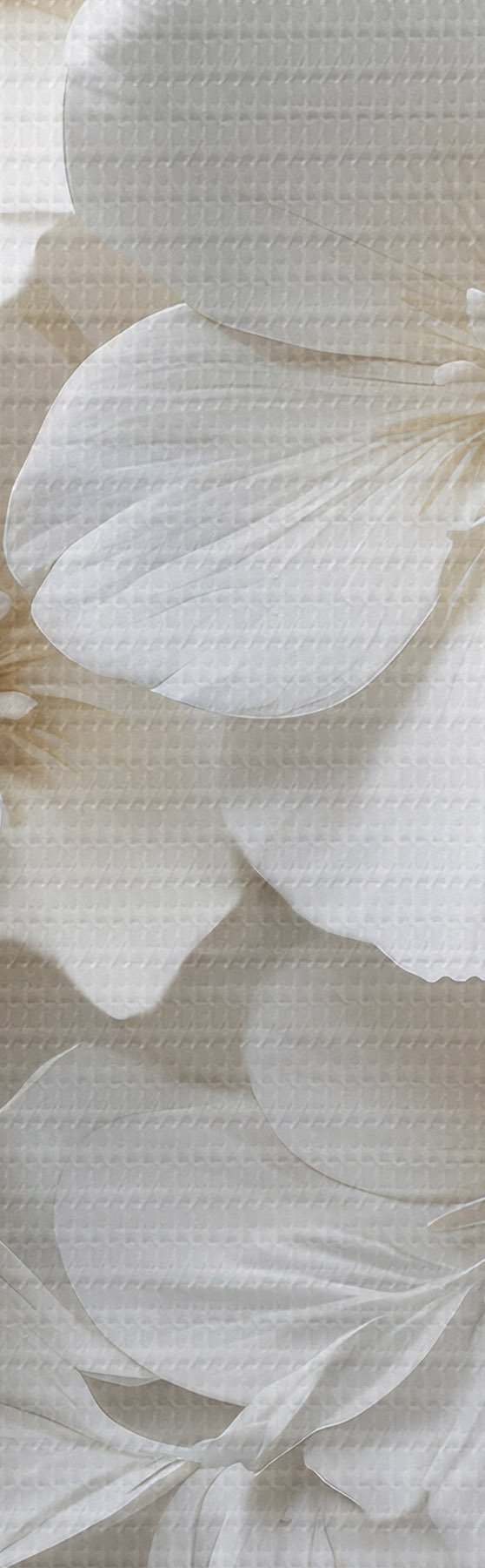 Tableaux rondes Fleurs blanches aux pétales délicats disposées selon un magnifique motif floral sur un fond clair r40548