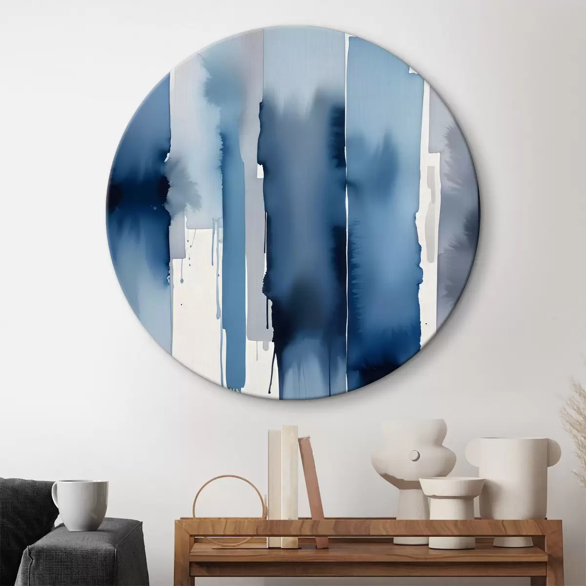 Tableaux rondes Grands coups de pinceau abstraits à l'aquarelle dans une composition brumeuse et bleutée Nr r40564