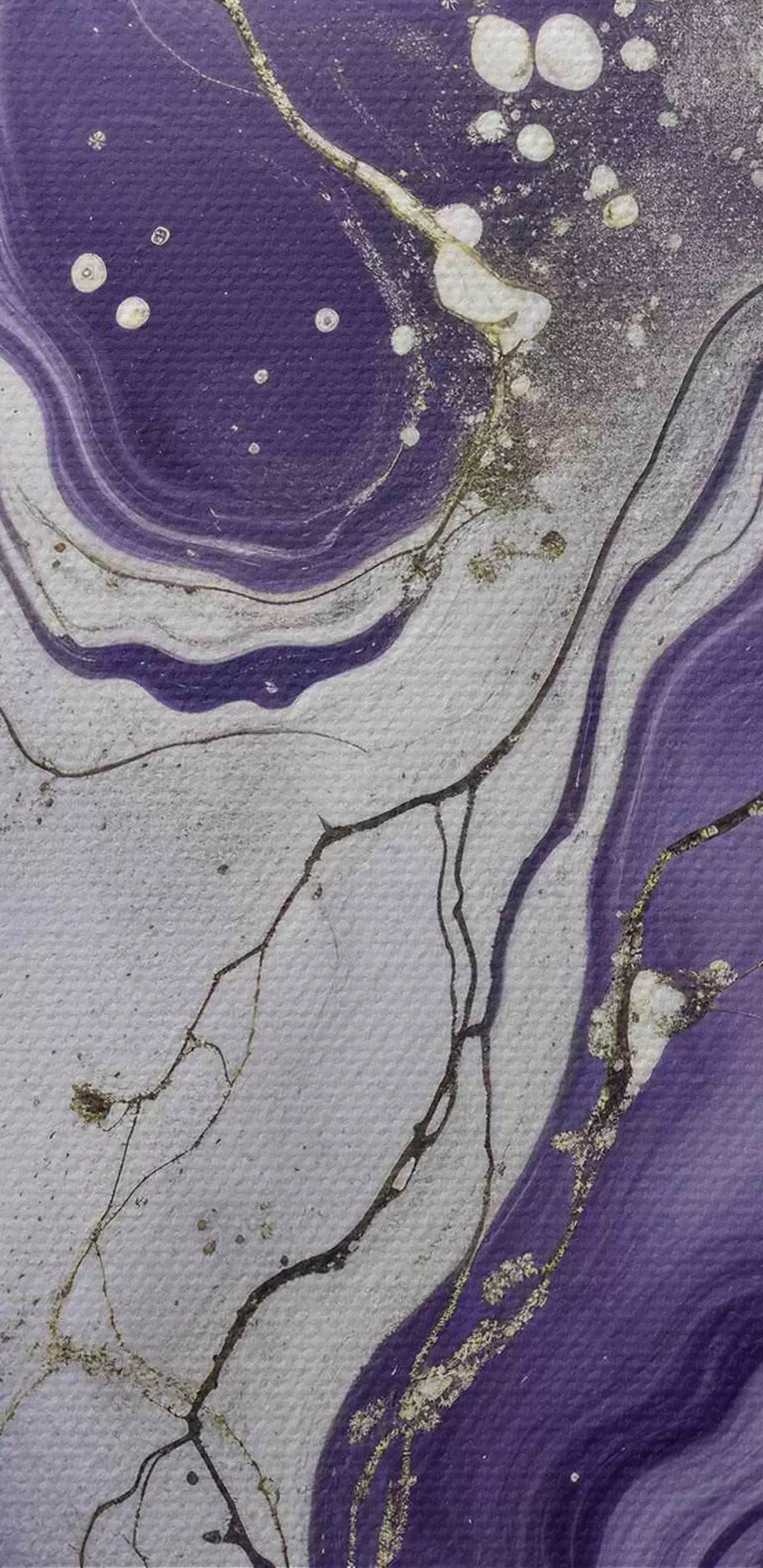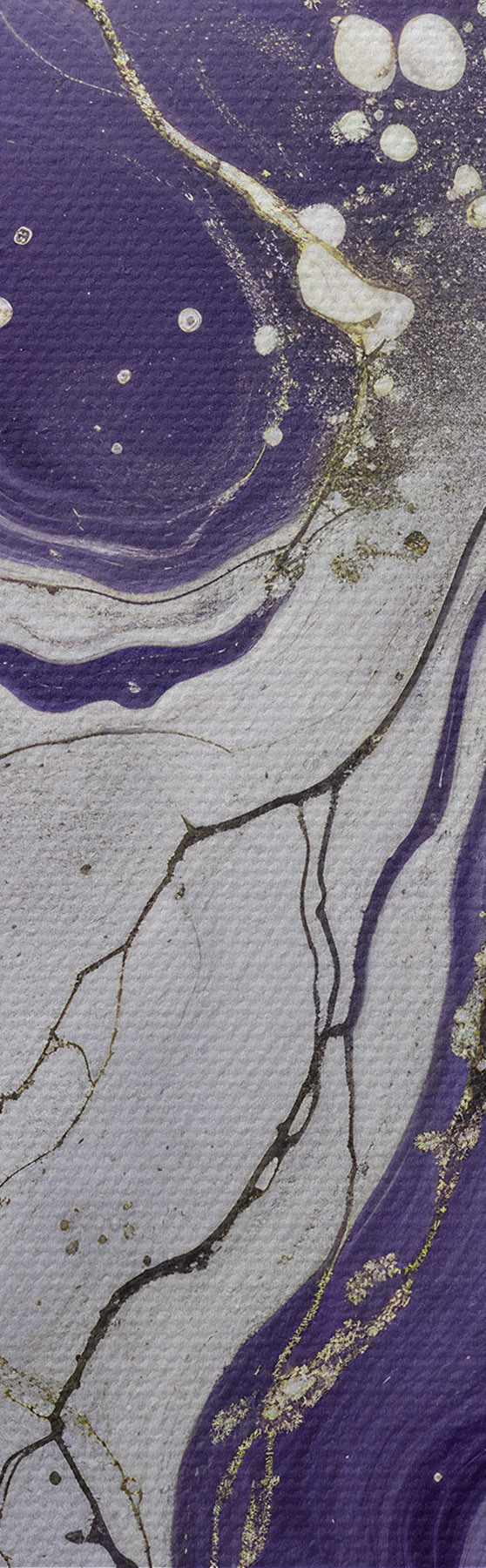 Tableaux rondes Composition d'art abstrait fluide imprimée avec des encres violettes, blanches et grises tourbillonnantes Nr r40566