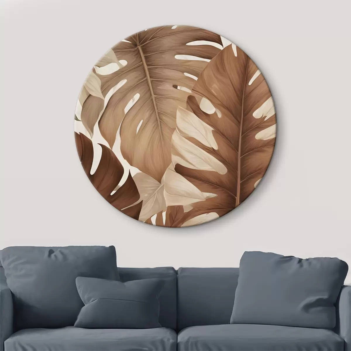 Tableaux rondes Imprimé de feuilles tropicales à la texture naturelle et organique dans les tons marron et beige Nr r40613