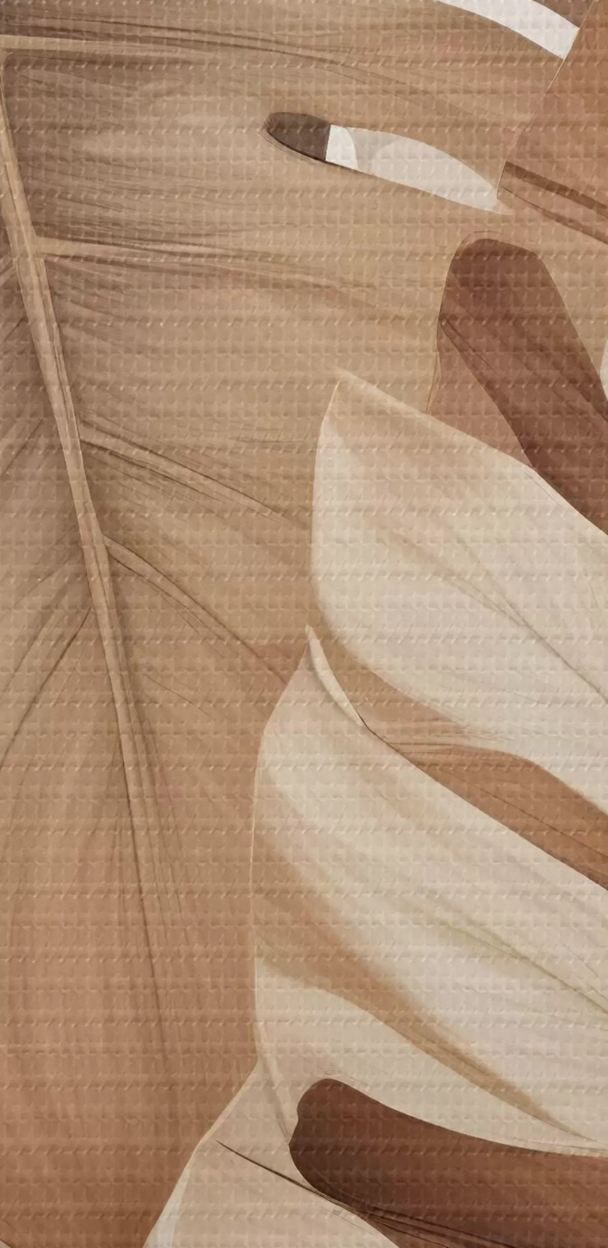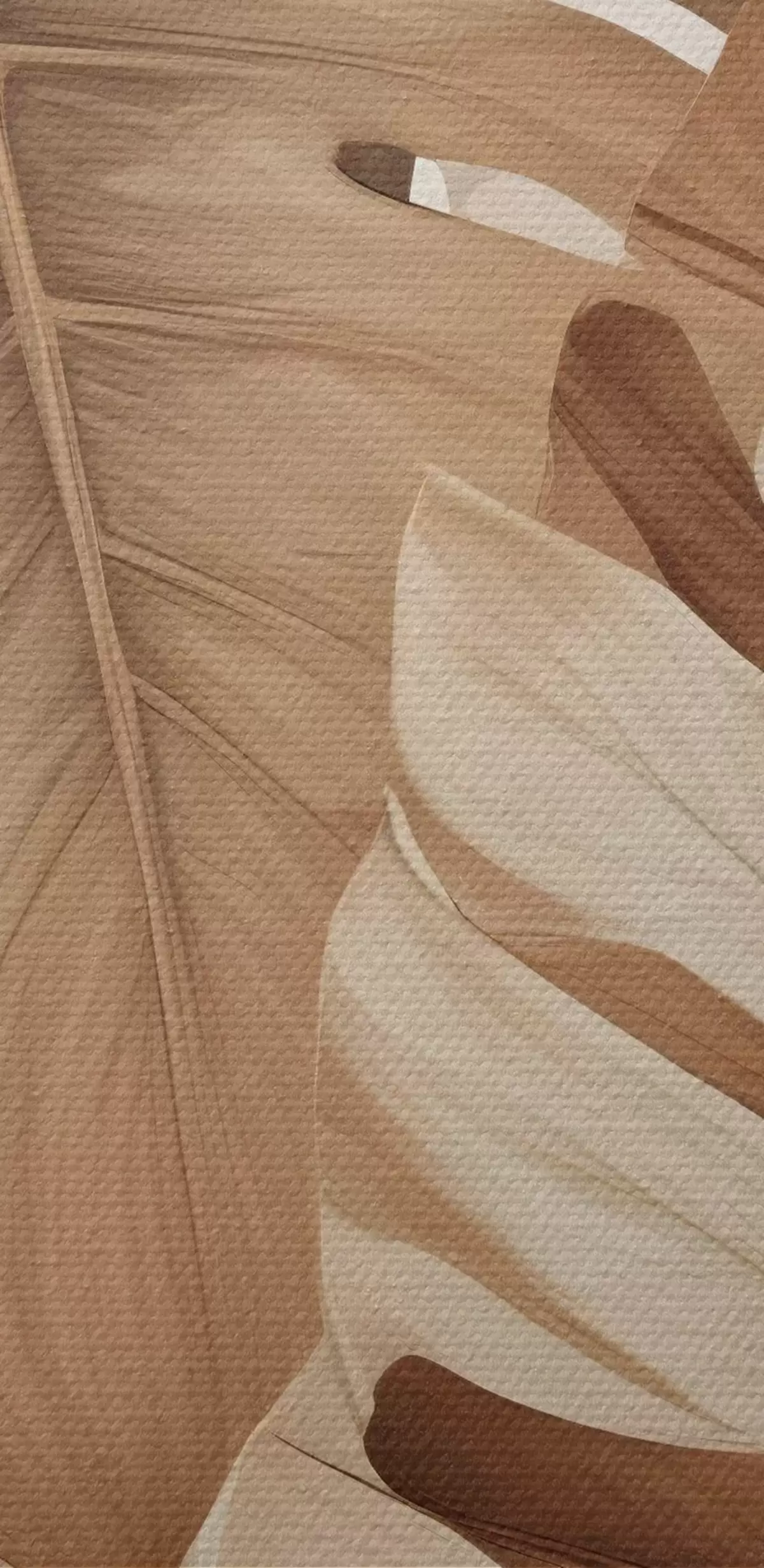 Tableaux rondes Imprimé de feuilles tropicales à la texture naturelle et organique dans les tons marron et beige r40613