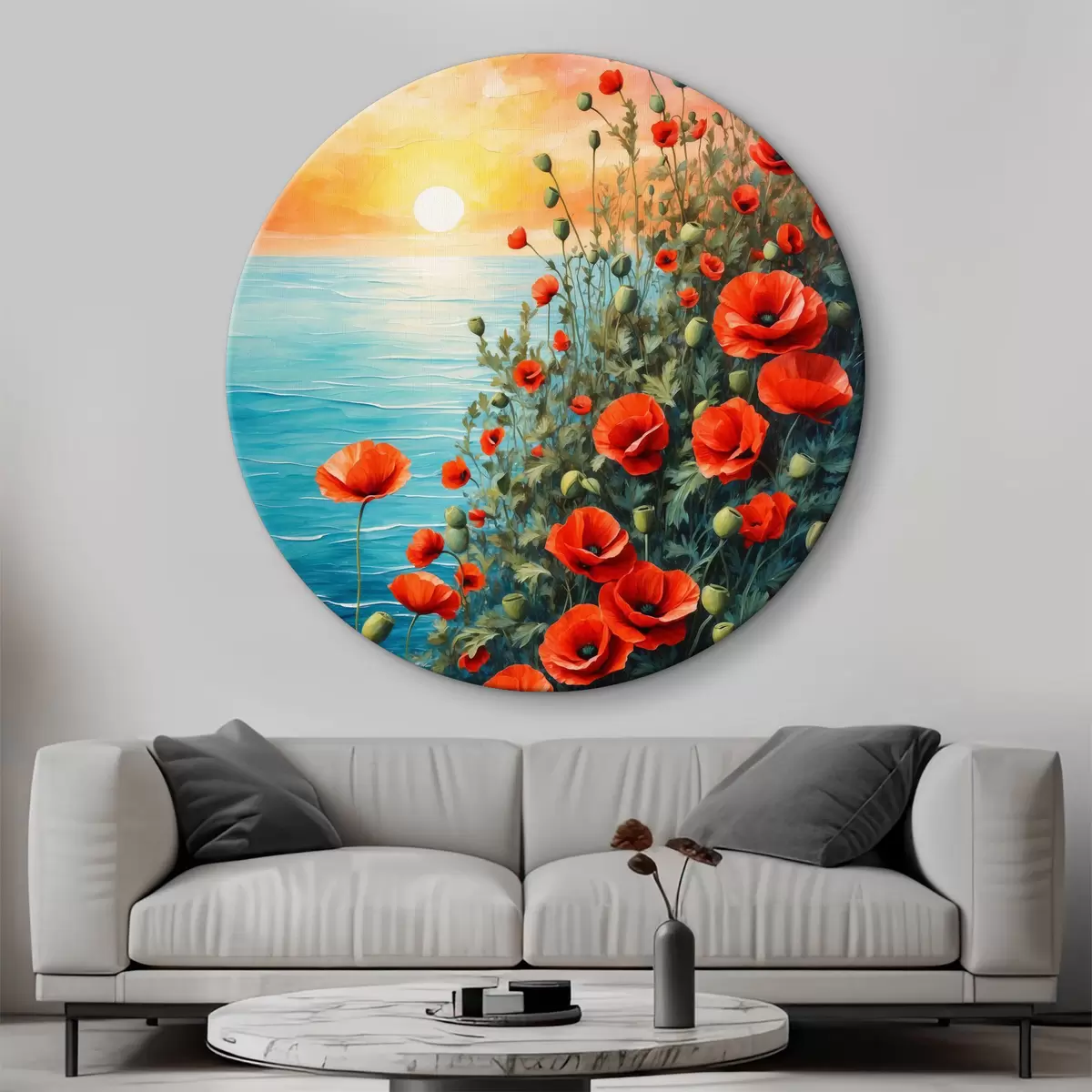 Tableaux rondes Coquelicots en fleurs sur fond de mer Nr r40637