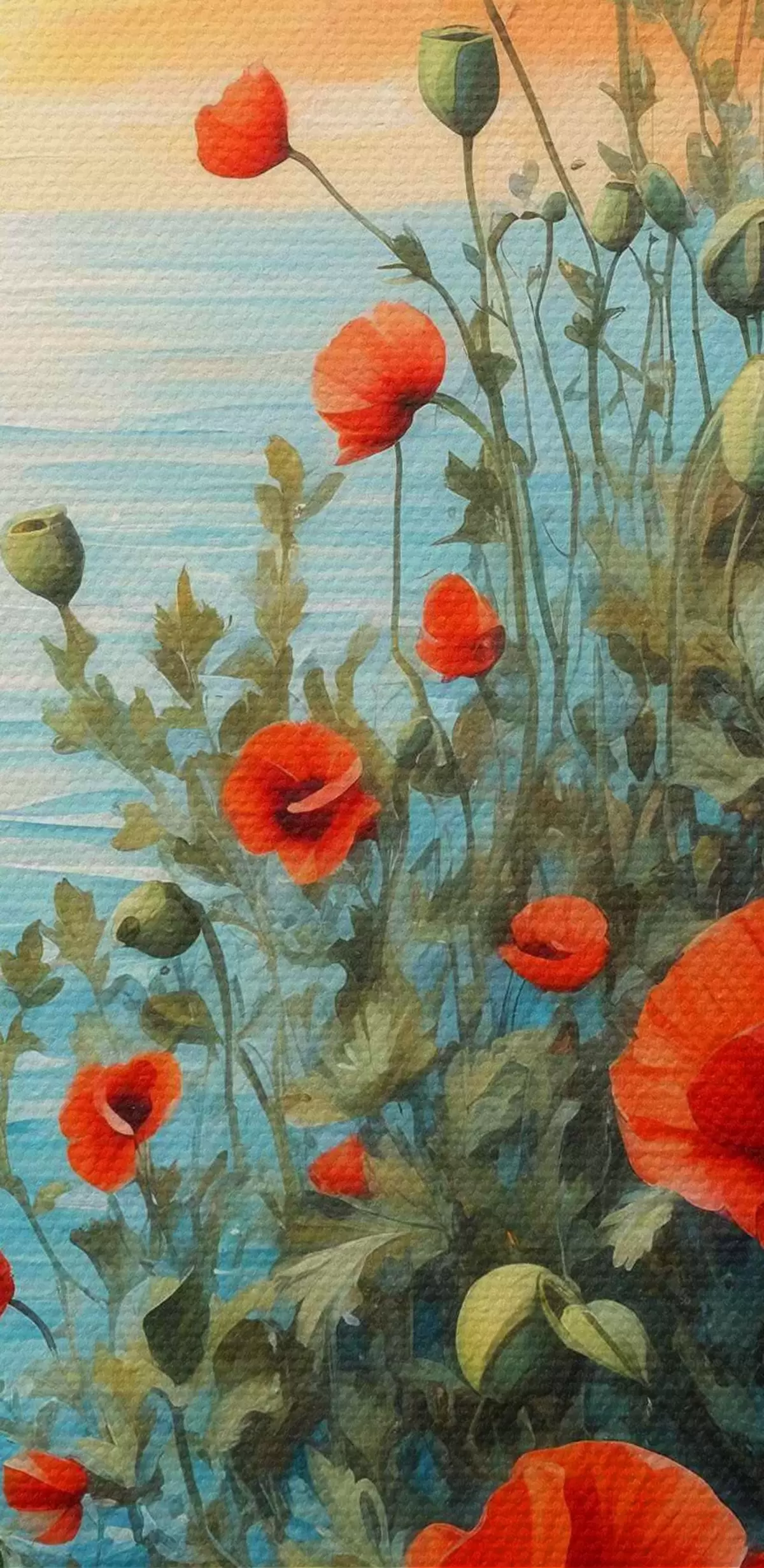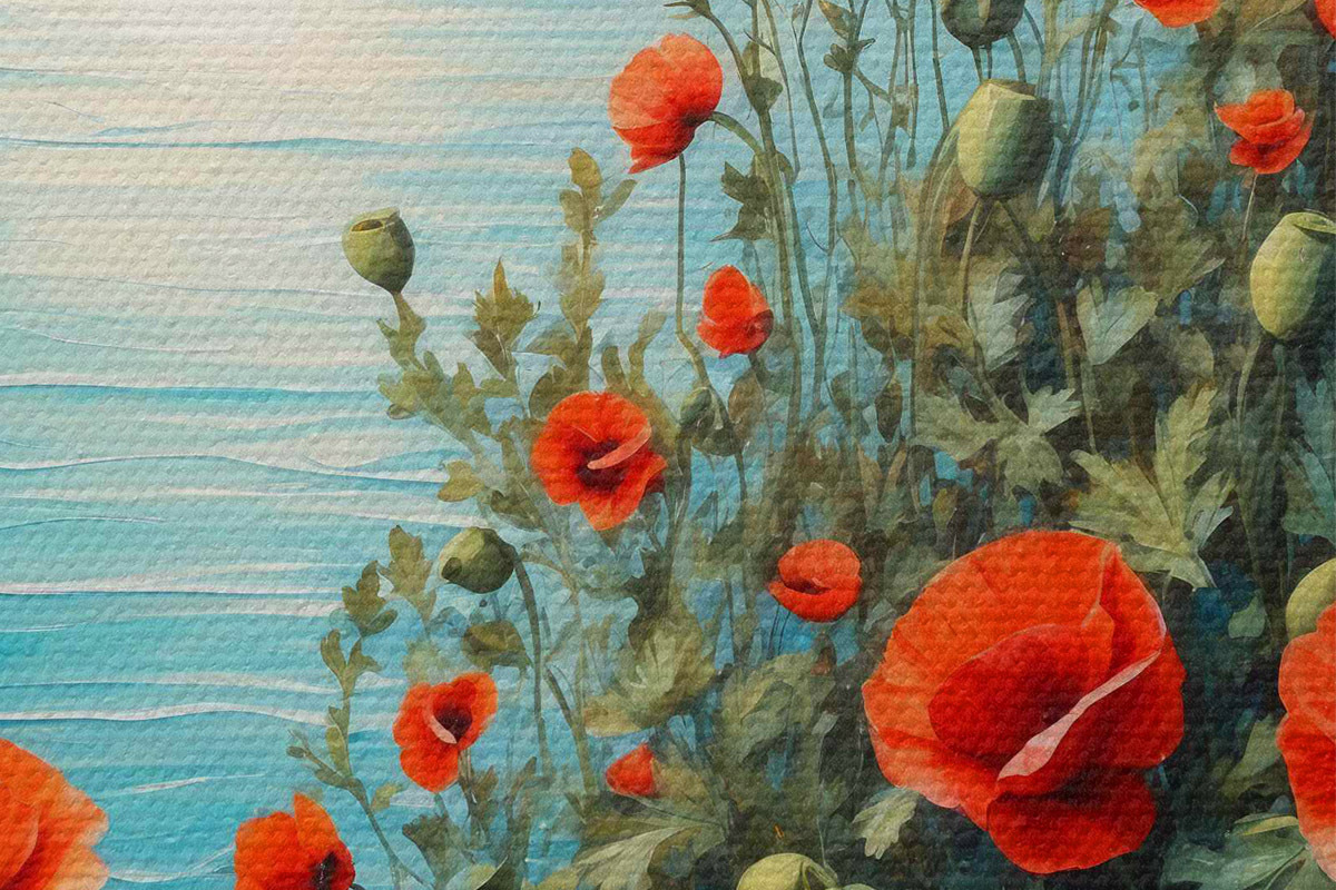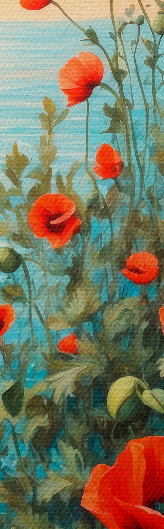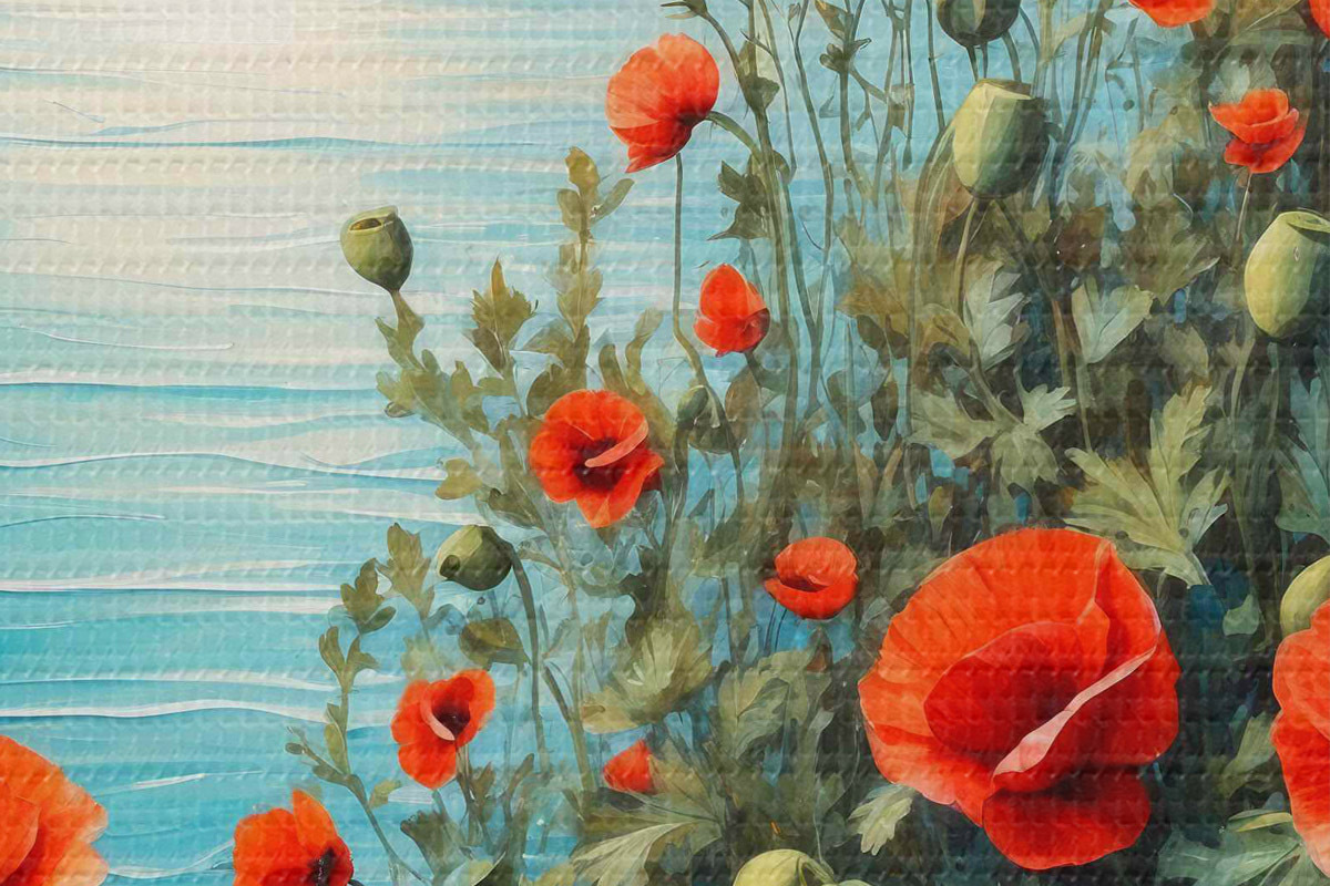 Tableaux rondes Coquelicots en fleurs sur fond de mer r40637