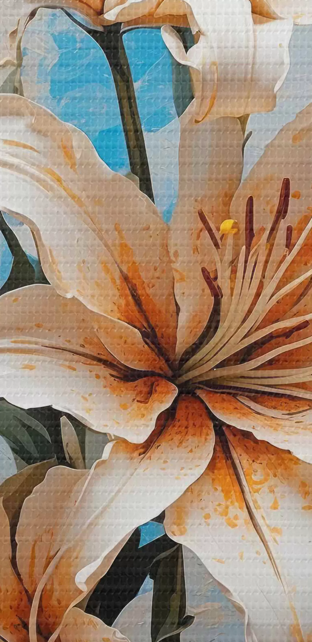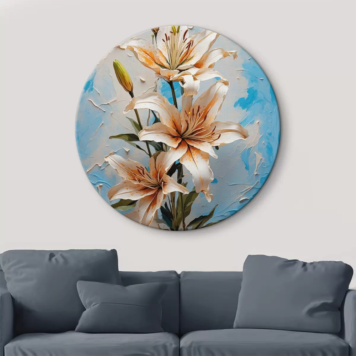 Tableaux rondes Lys sur fond abstrait bleu et blanc Nr r40640