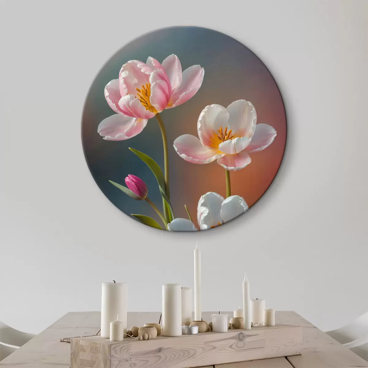Tableaux rondes Fleurs roses sur fond flou Nr r40644