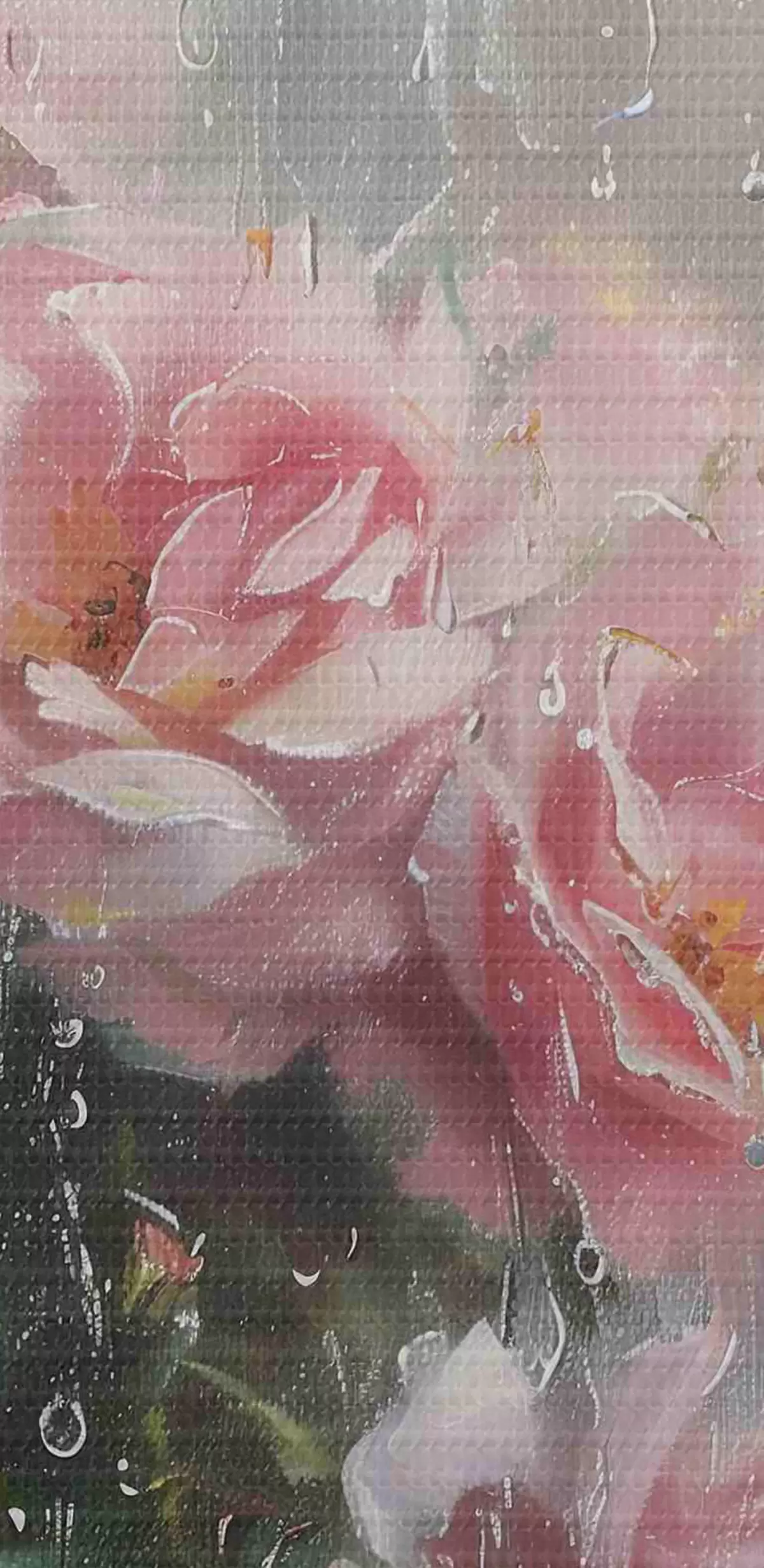 Tableaux rondes Un bouquet de roses roses à l'extérieur de la fenêtre par temps pluvieux r40656