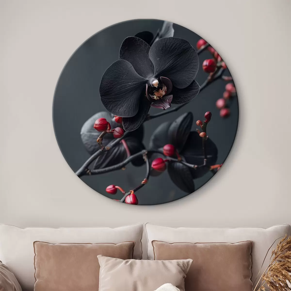 Tableaux rondes Arrangement floral élégant avec orchidée noire Nr r40663