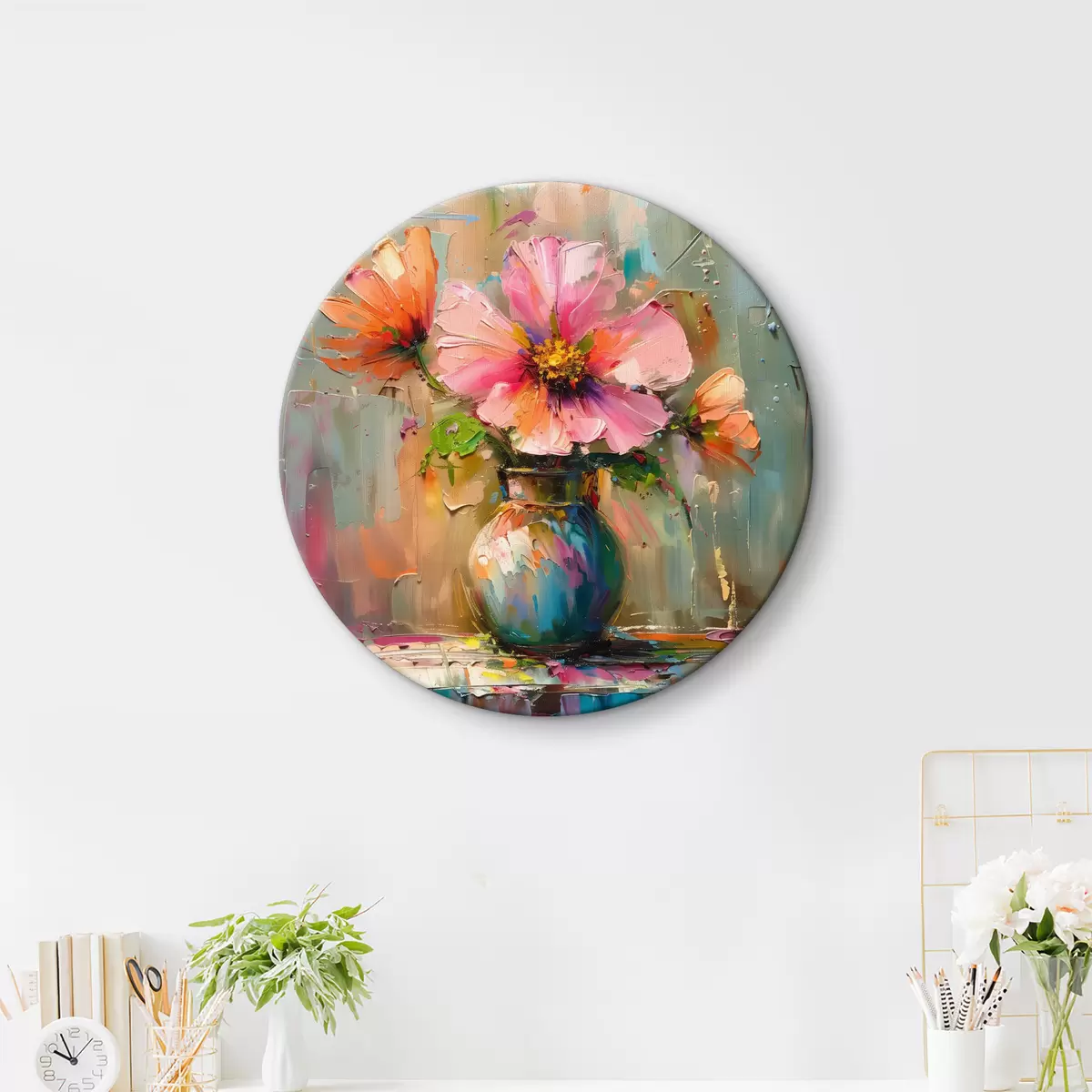 Tableaux rondes Fleur colorée dans un vase avec de grands coups de peinture à l'huile Nr r40664
