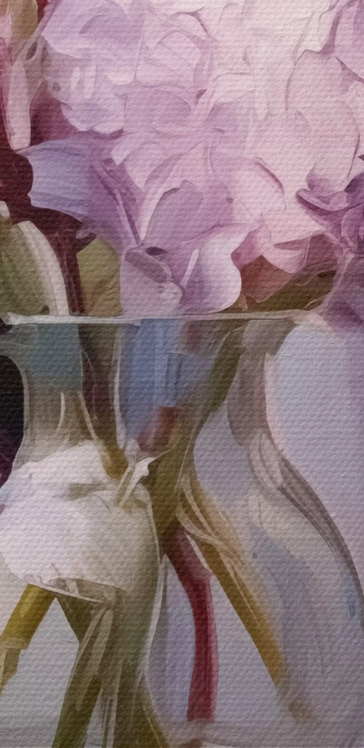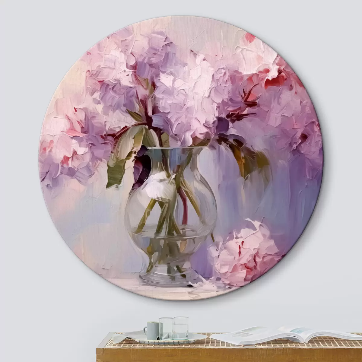 Tableaux rondes Jacinthes dans un vase en verre aux couleurs pastel Nr r40678