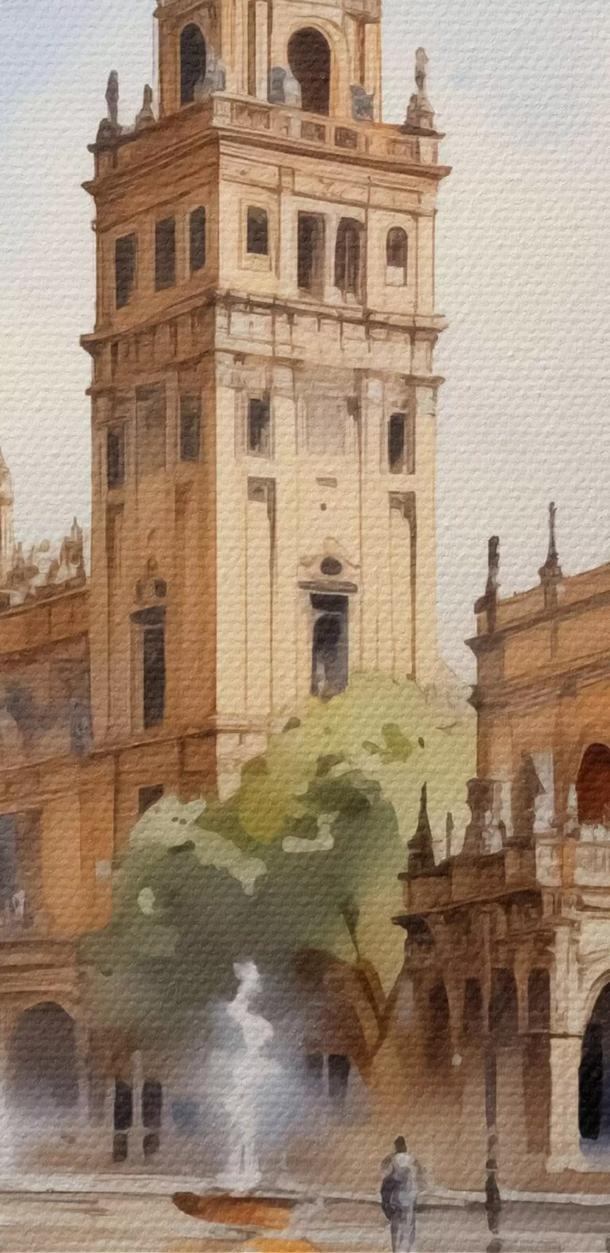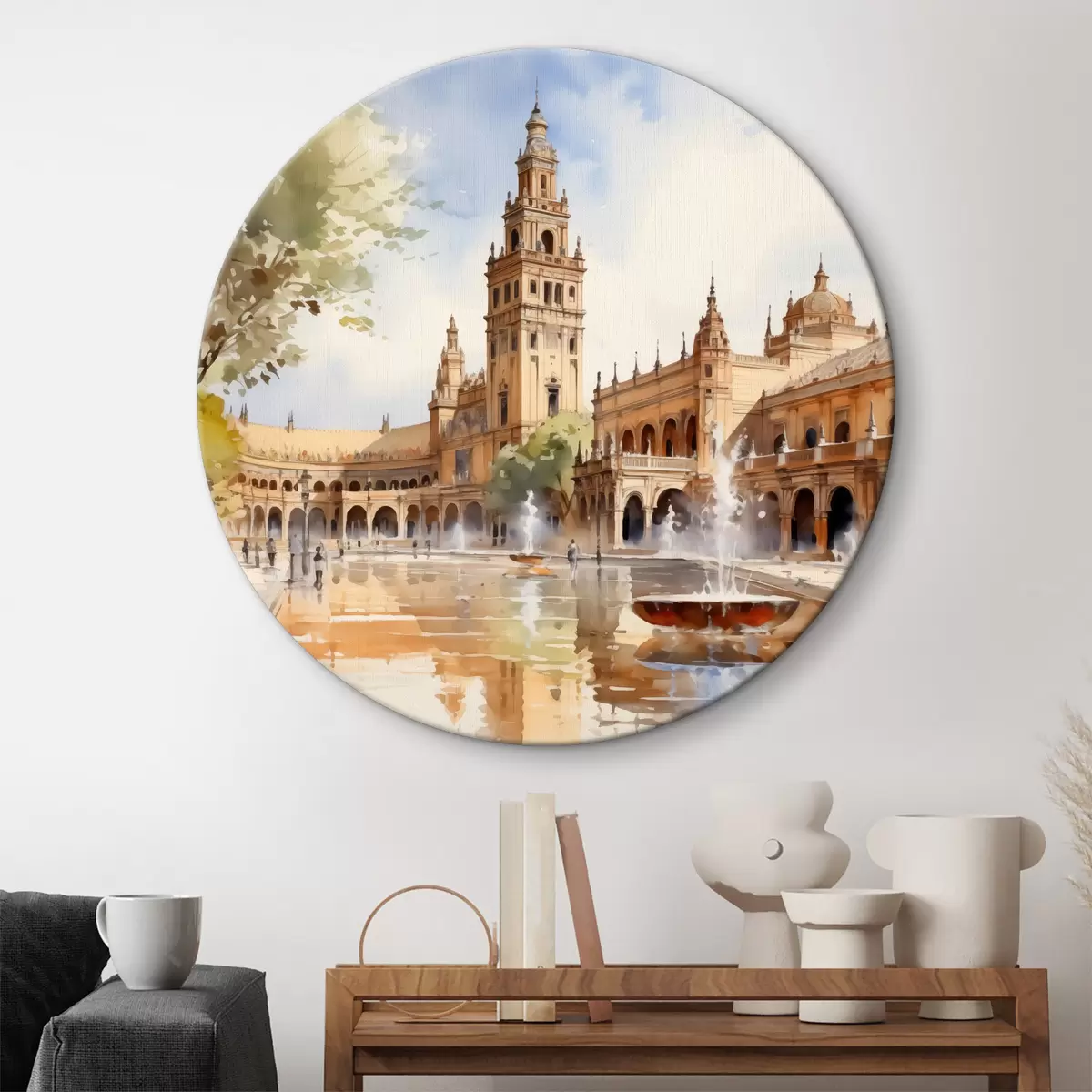 Tableaux rondes Place du château dans la ville de l'aquarelle r40681
