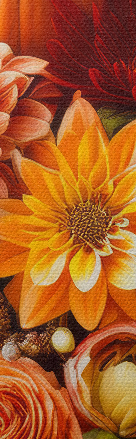 Trois types de matériaux peuvent être commandés : Economic Canvas - matériau dense et durable pour l'impression numérique, identique à la toile de peintre, surface imperméable, reproduction réaliste des détails, matériau à grain moyen. Premium Canvas - la texture ressemble à celle d'une toile de peintre (petits fils entrelacés). Reproduction douce et détaillée de l'image sur une surface mate. Eco-Premium - tissu 100 % coton de haute qualité. Grâce aux fibres naturelles de coton, le matériau est durable et résistant à l'usure. Excellente reproduction des couleurs et des détails.