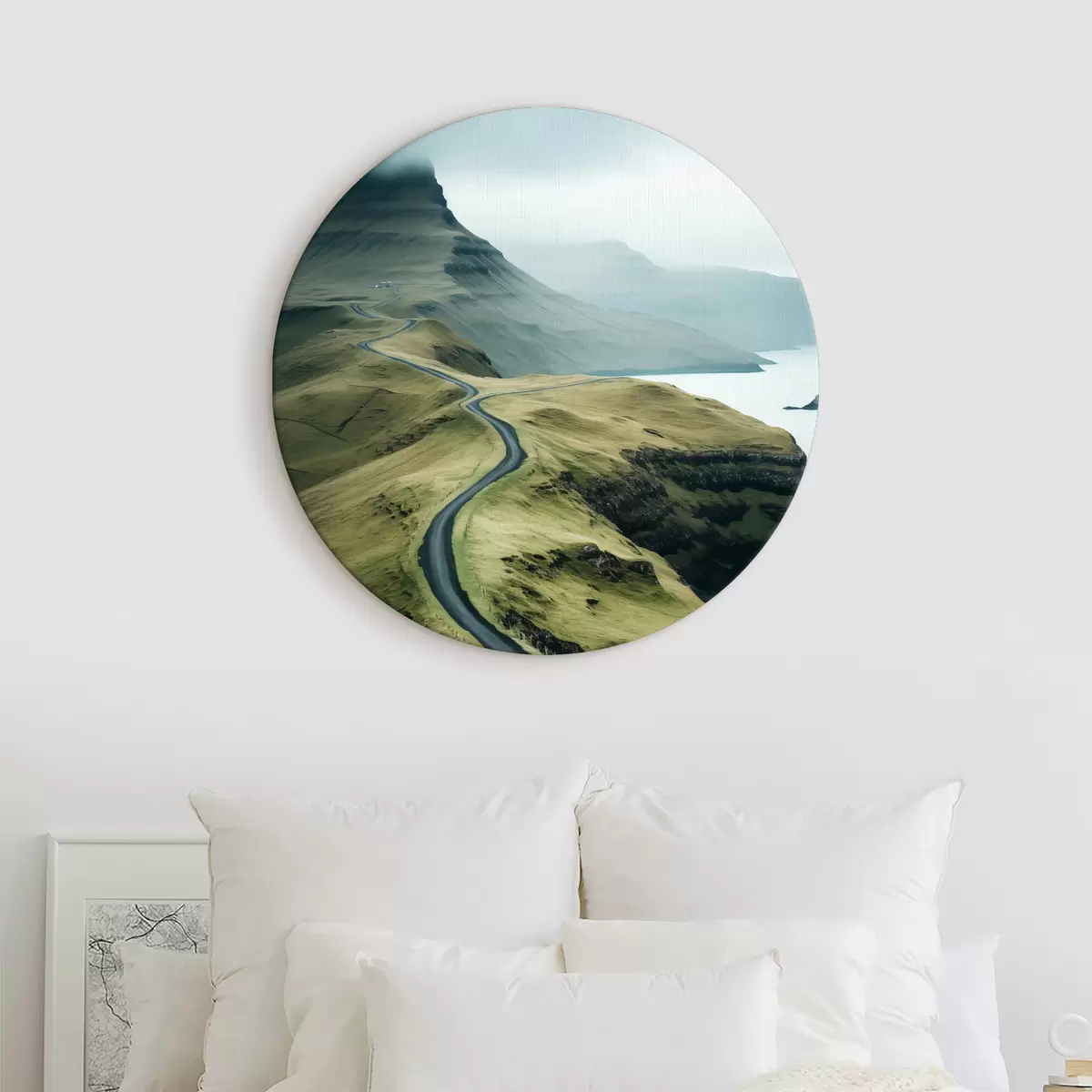 Tableaux rondes Paysage routier minimaliste dans les îles Féroé, au bord de la mer Nr r40726