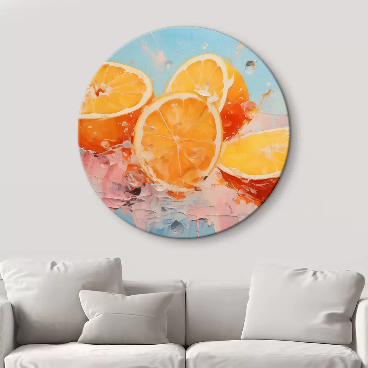 Tableaux rondes Moitiés d'orange sur la table, orange, rouge, bleu, rose, jaune r40727
