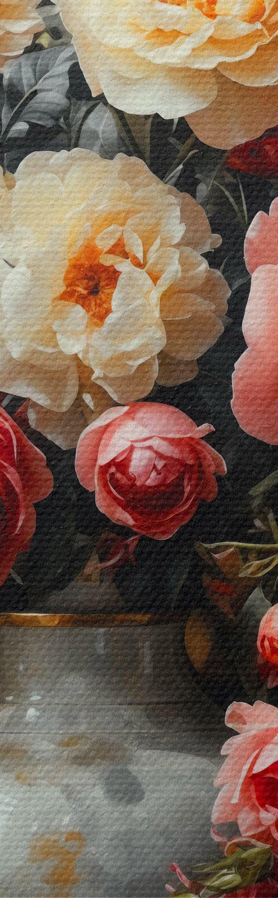 Trois types de matériaux peuvent être commandés : Economic Canvas - matériau dense et durable pour l'impression numérique, identique à la toile de peintre, surface imperméable, reproduction réaliste des détails, matériau à grain moyen. Premium Canvas - la texture ressemble à celle d'une toile de peintre (petits fils entrelacés). Reproduction douce et détaillée de l'image sur une surface mate. Eco-Premium - tissu 100 % coton de haute qualité. Grâce aux fibres naturelles de coton, le matériau est durable et résistant à l'usure. Excellente reproduction des couleurs et des détails.