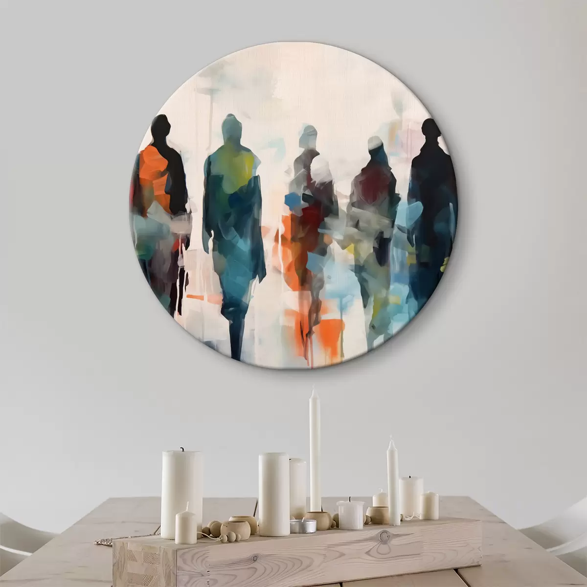 Tableaux rondes Silhouettes d'un groupe de personnes abstraites, imitation de coups de pinceau Nr r40752