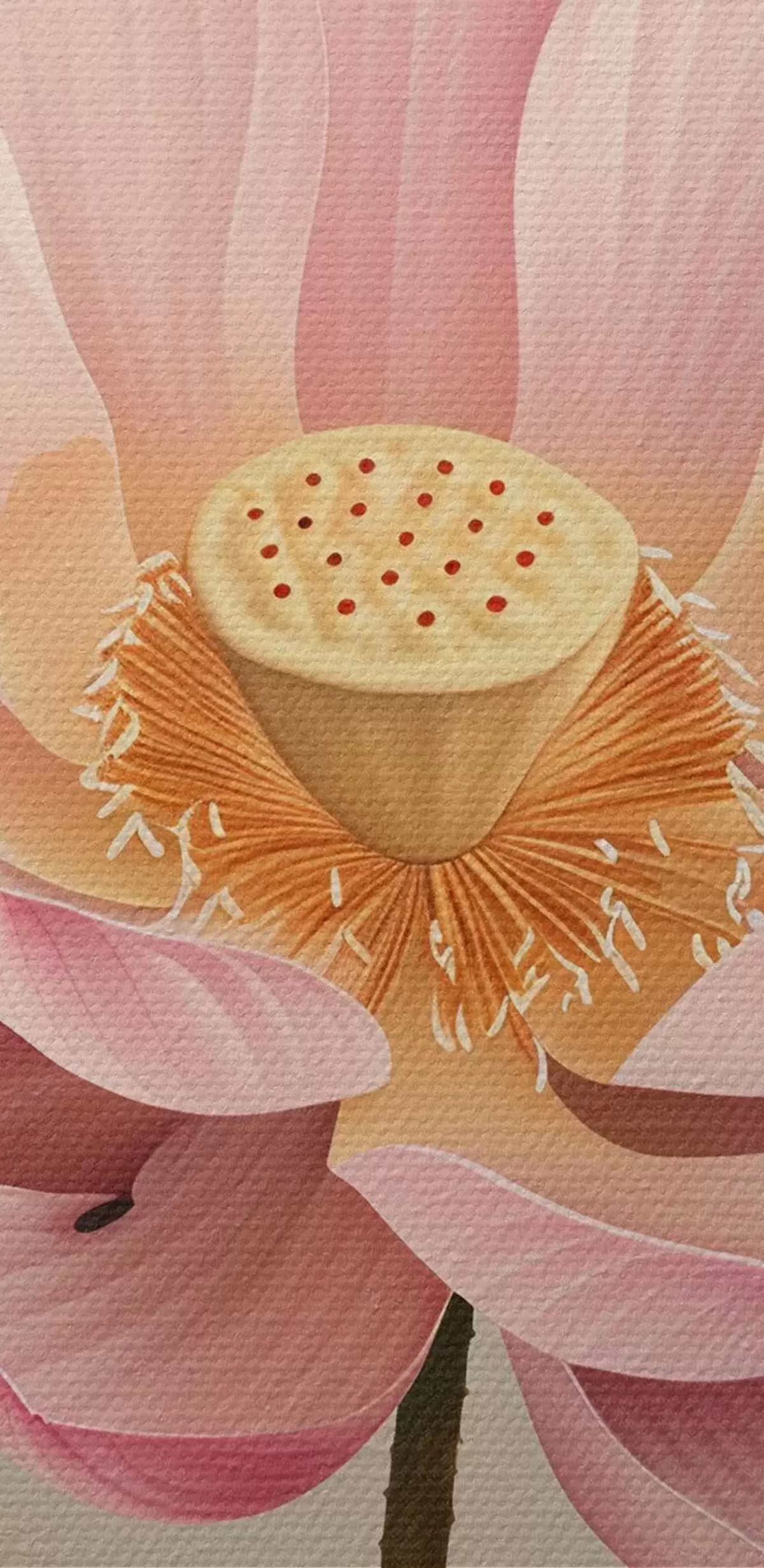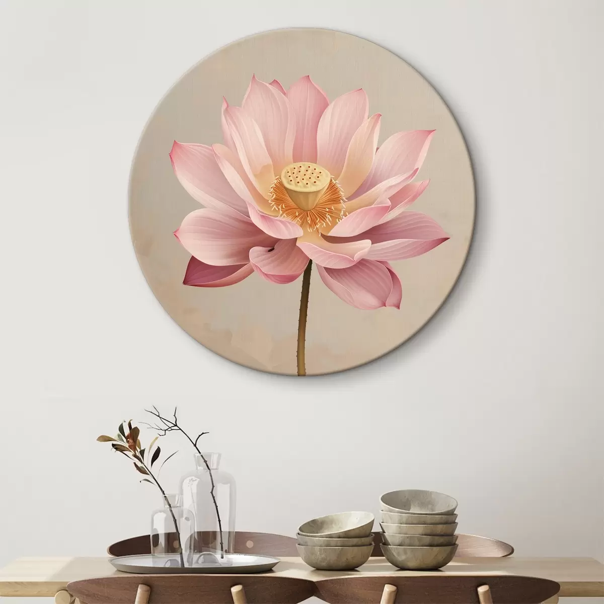 Tableaux rondes Lotus rose sur fond beige Nr r40769
