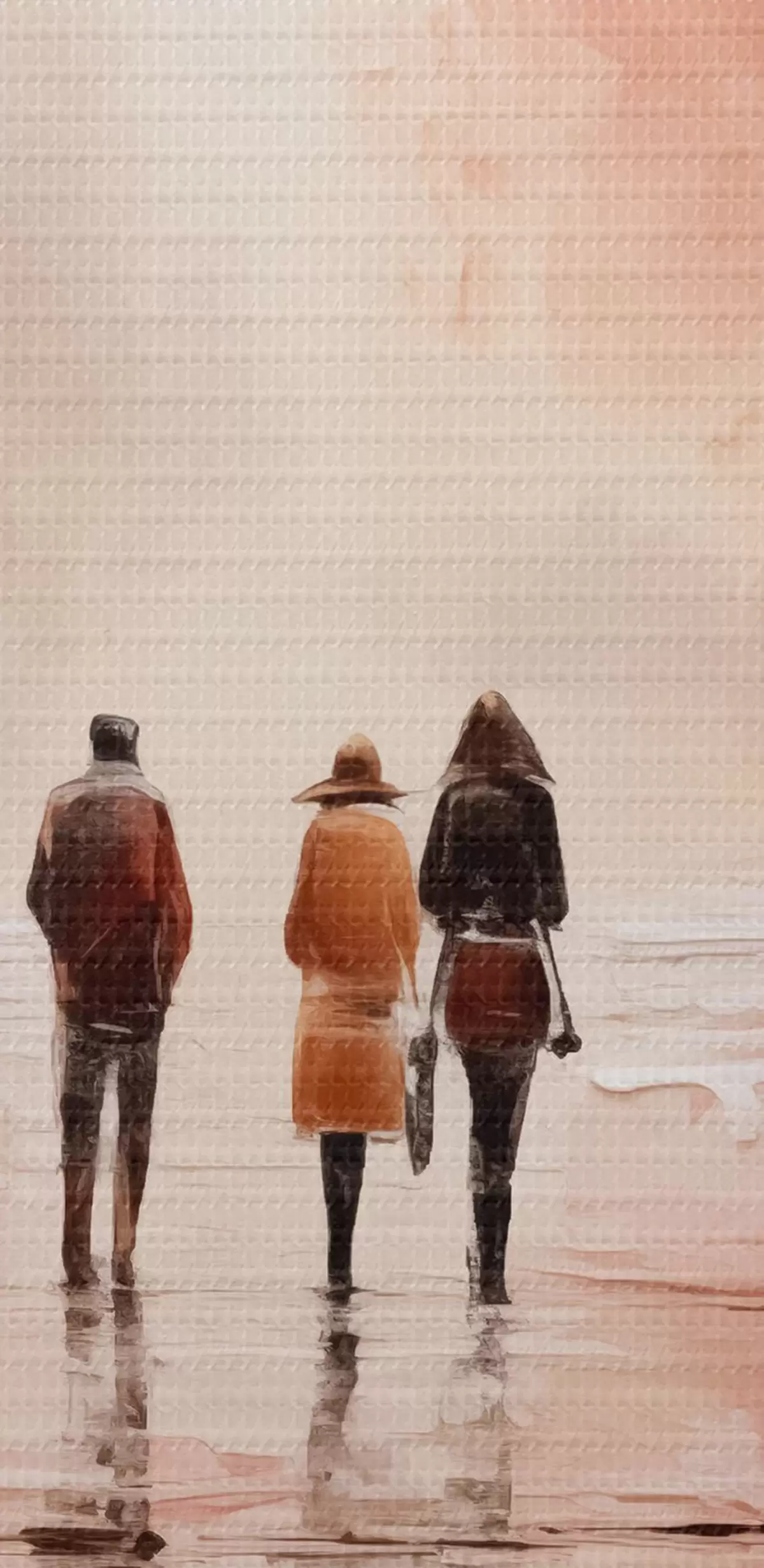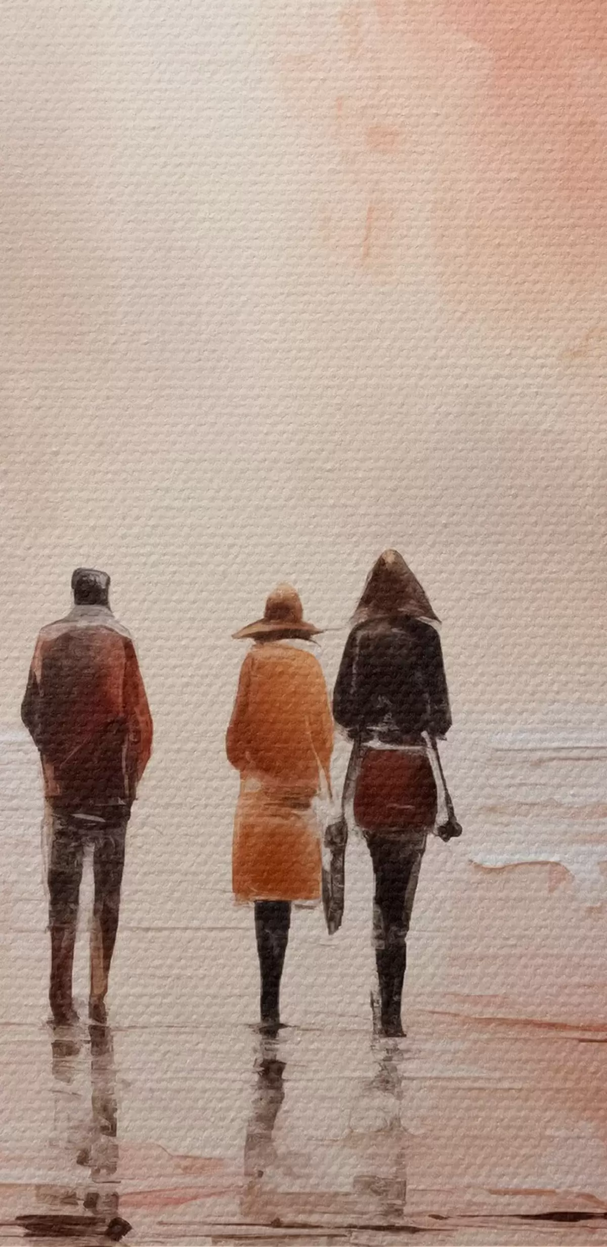 Tableaux rondes Personnes se promenant dans le parc abstraction, couleur rose rouge r40802