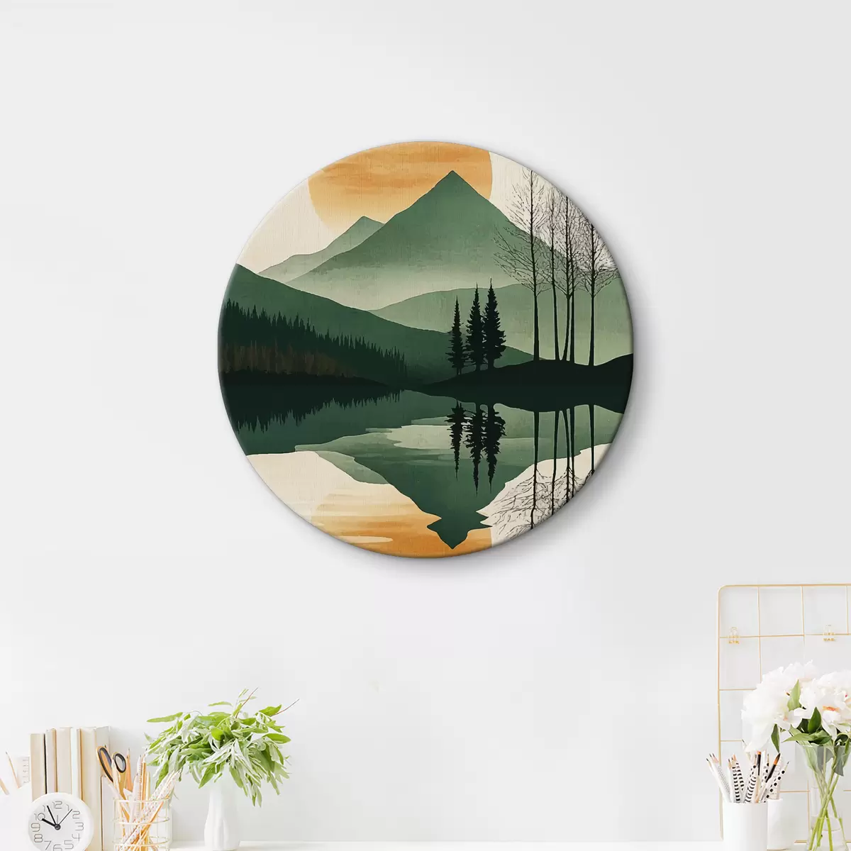 Tableaux rondes Montagnes et lever de soleil Nr r40832