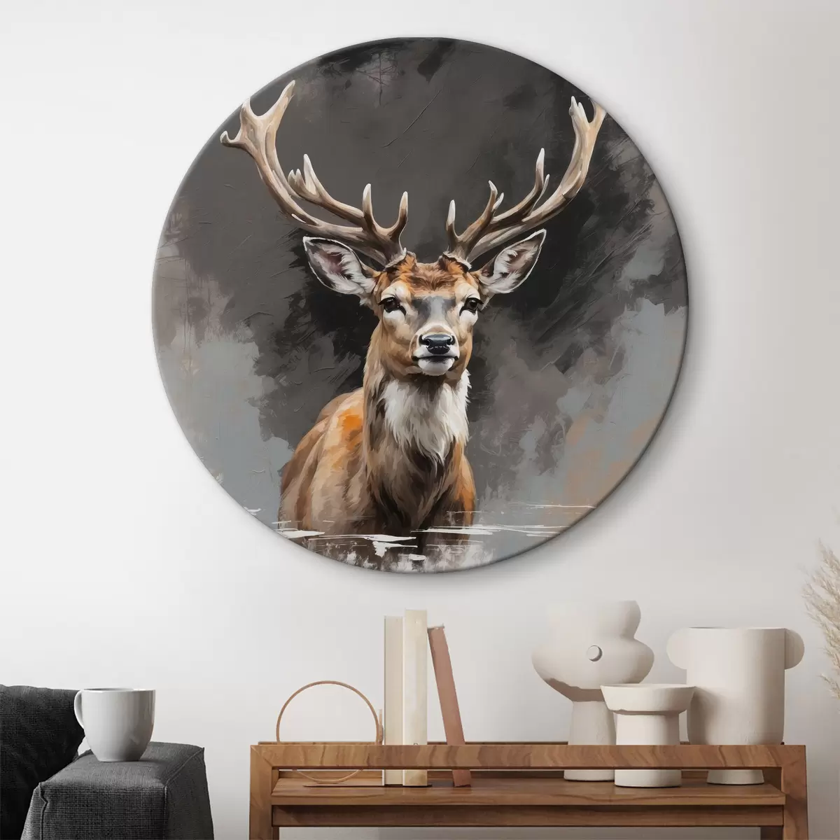 Tableaux rondes Cerf sur fond gris et noir Nr r40865
