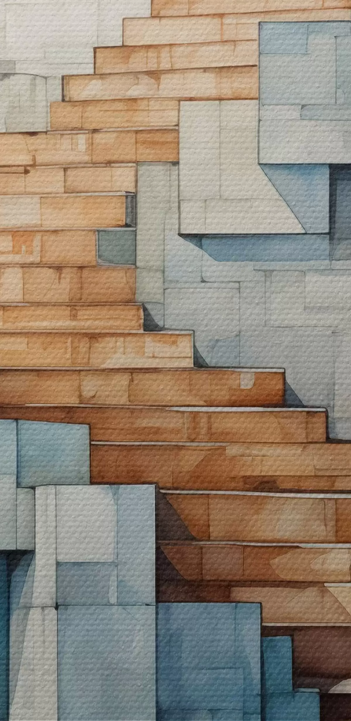 Tableaux rondes Escalier en pierre paysage architectural abstrait aquarelle Nr r40891