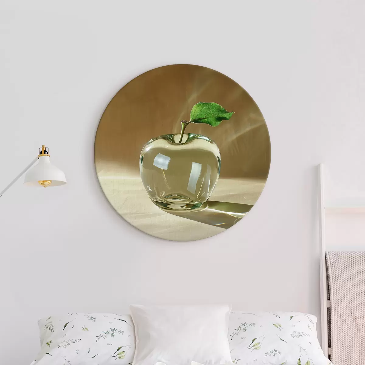 Tableaux rondes Pomme en verre transparent sur fond clair Nr r40913