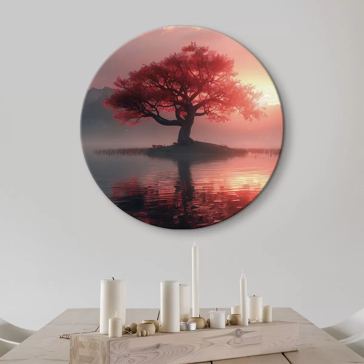Tableaux rondes Arbre au bord de l'étang au coucher du soleil Nr r40934