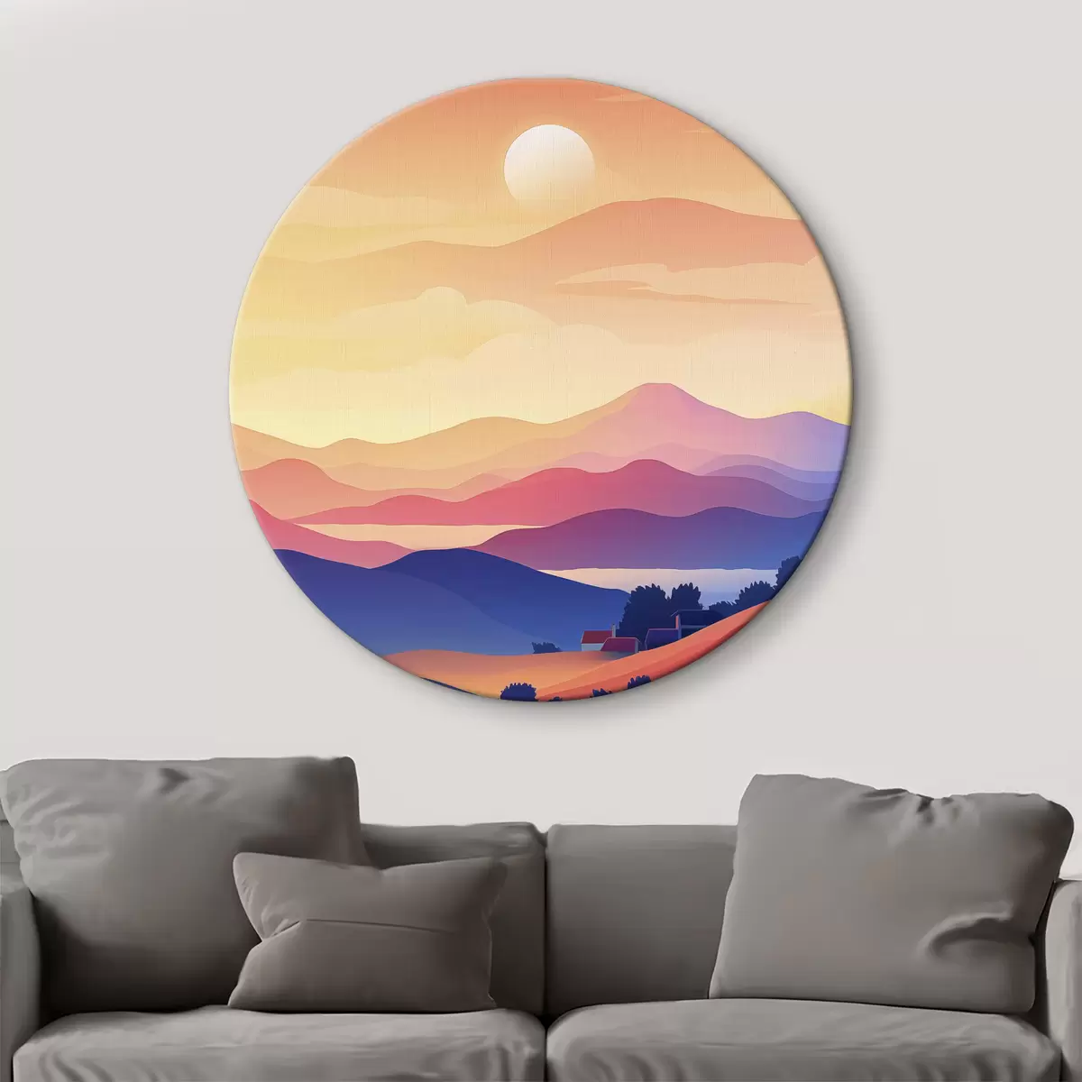 Tableaux rondes Abstraction paysages, montagnes, coucher de soleil, maisons r40948